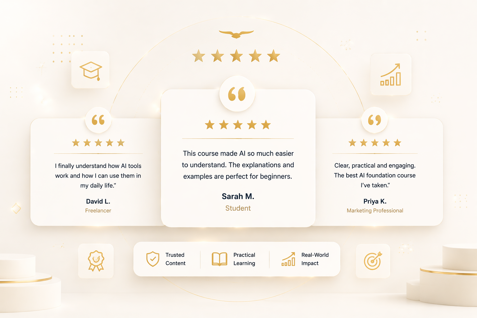 Artificial intelligence can feel complex at first. This course turns core AI ideas into clear, practical understanding so you can build real confidence, use today’s most important tools, and apply what you learn in real-world situations.