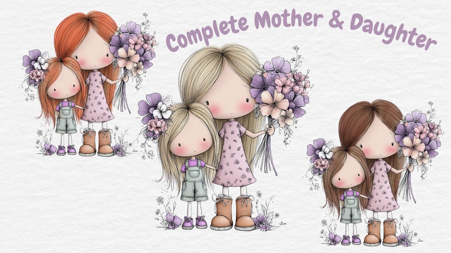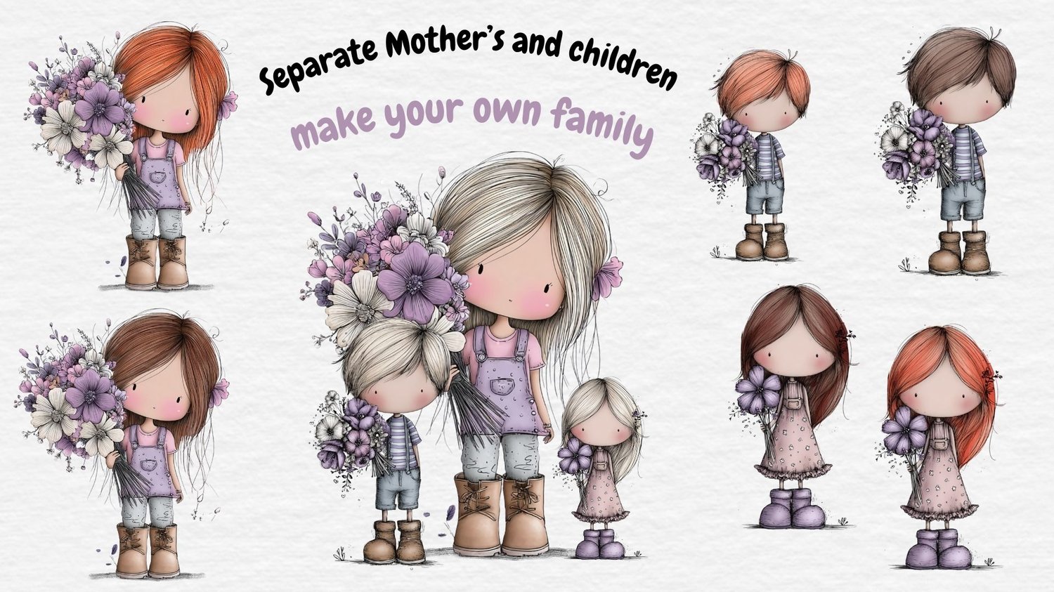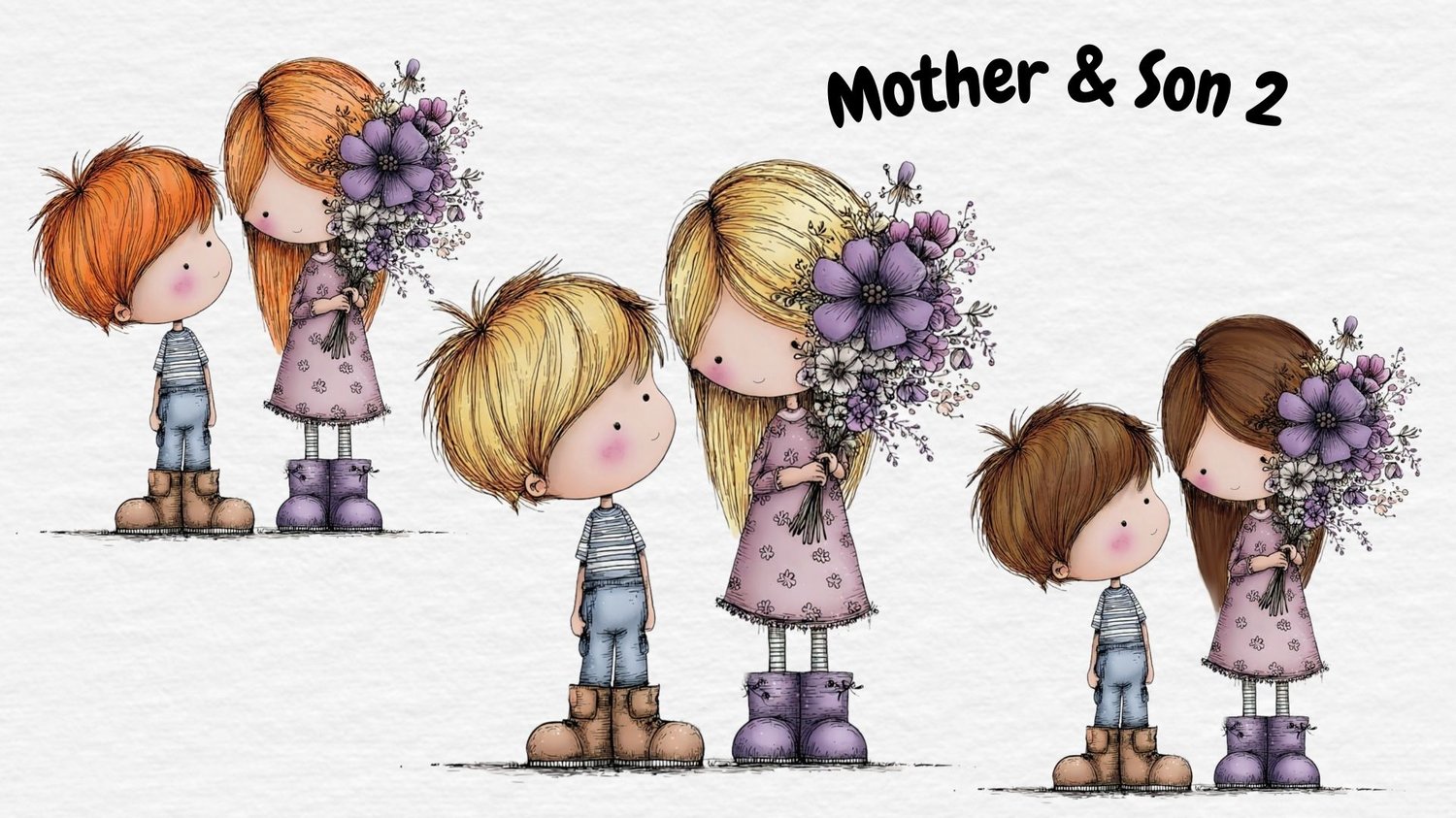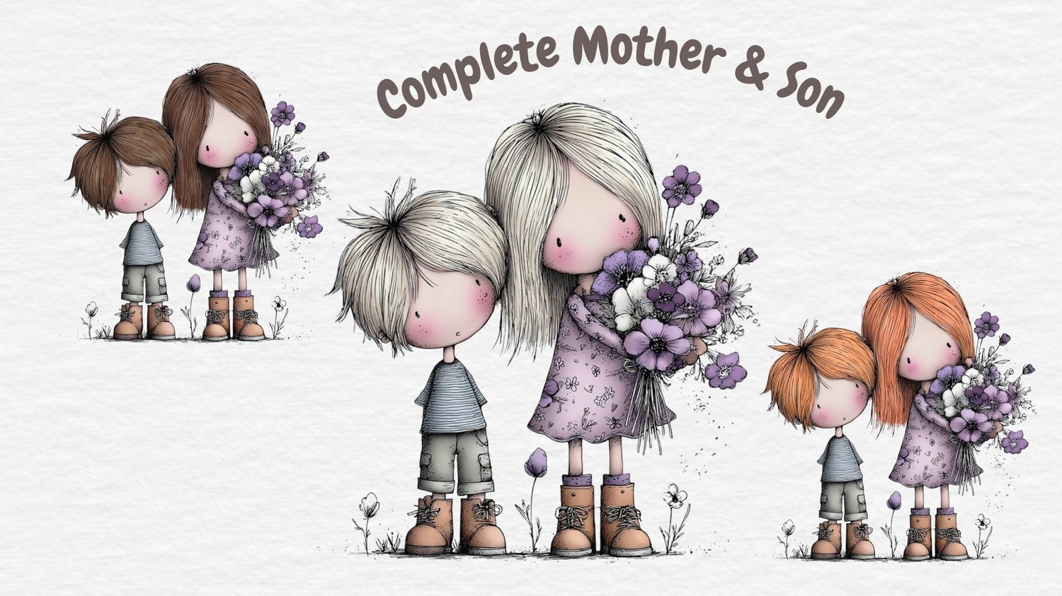 Whimsical Mother’s Day Clipart • Mother with Kids Flowers • Cute Mother Son Daughter PNG Bundle • 18 PNG Family Clipart • Sublimation Download