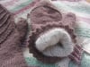 Mamo mittens offer a touch of luxurious warmth and comfort to your hands ! The exterior has a tree of life gansey pattern with twisted stem and, inside, a fluffy lining. You can play with beads to decorate the tree and really make the mittens your own style. The picot edging fits easily over coats and jumpers to stop the cold winds. You will feel both special and cosy.