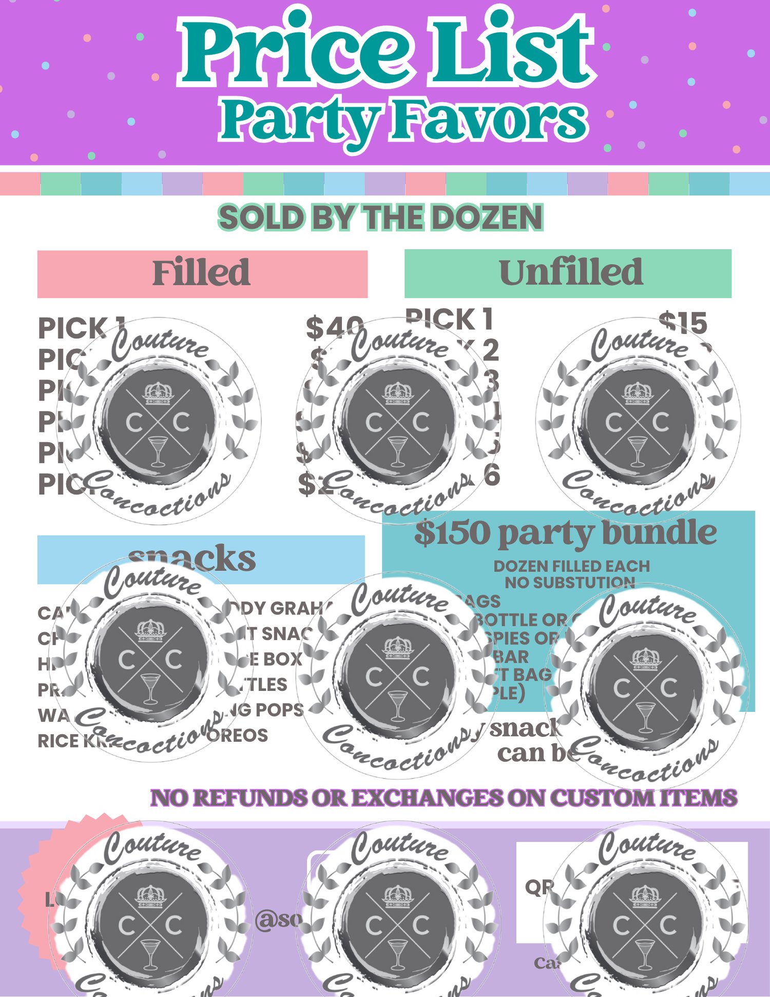 Custom Party Favor Price List Template(Digital)