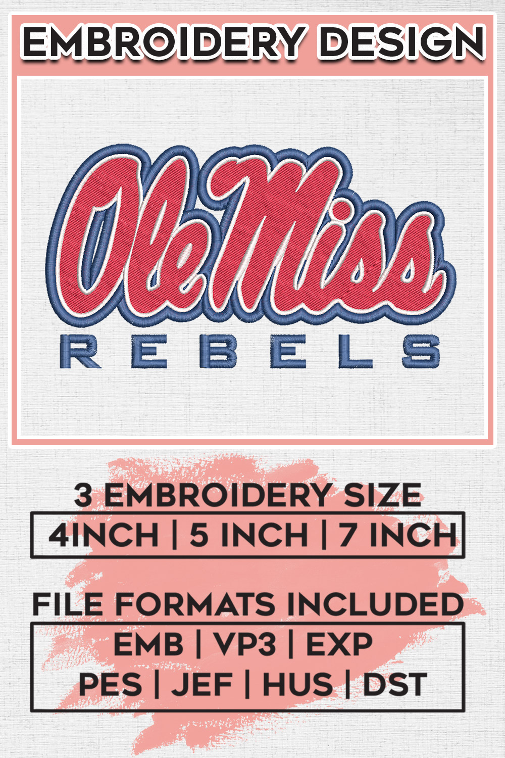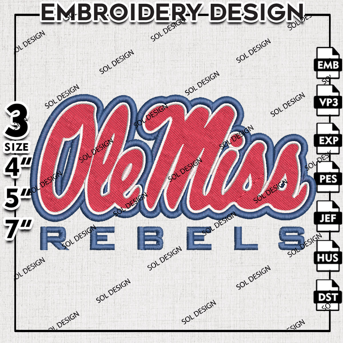 Ole Miss Rebels College Football Team Writing Logo Embroidery Designs, NCAA Ole Miss Rebels Machine Embroidery Files, NCAA Logo embroidery designs, NCAA Ole Miss Logo, Digital Download