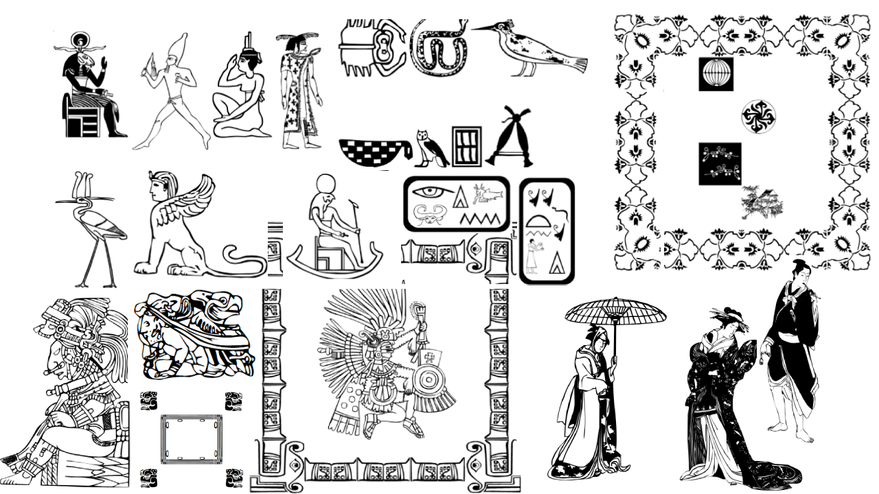 Vous recevez un fichier ZIP qui contient les 3 polices (glyphes et patchfontes) : Aztèque, Égypte et Japon.