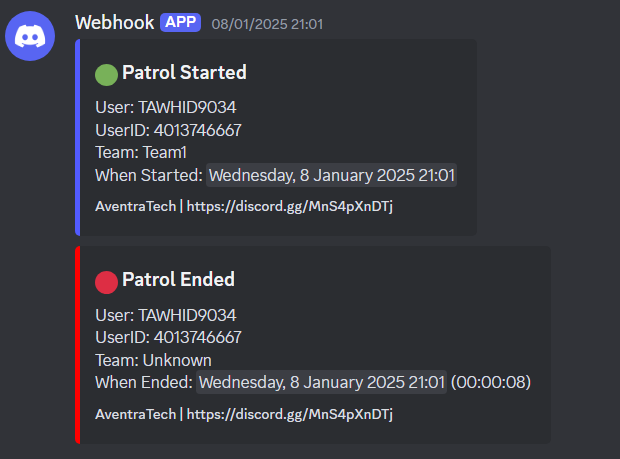 Webhook, Clean, Simple, Easy To Setup, Duty logger, Patrol Logger, Logger