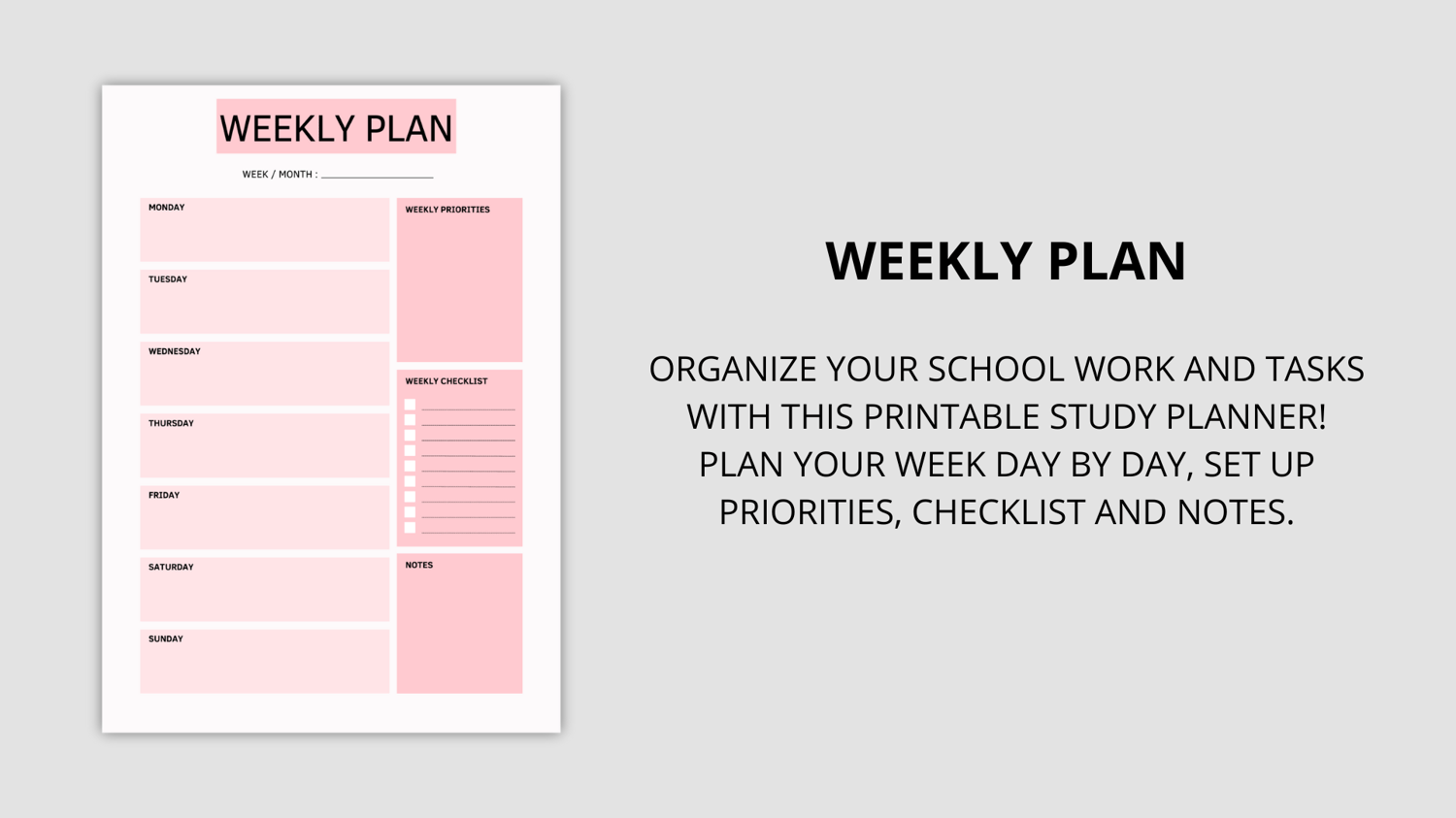Daily & Weekly Study Planner Bundle (Pink) | Printable PDF