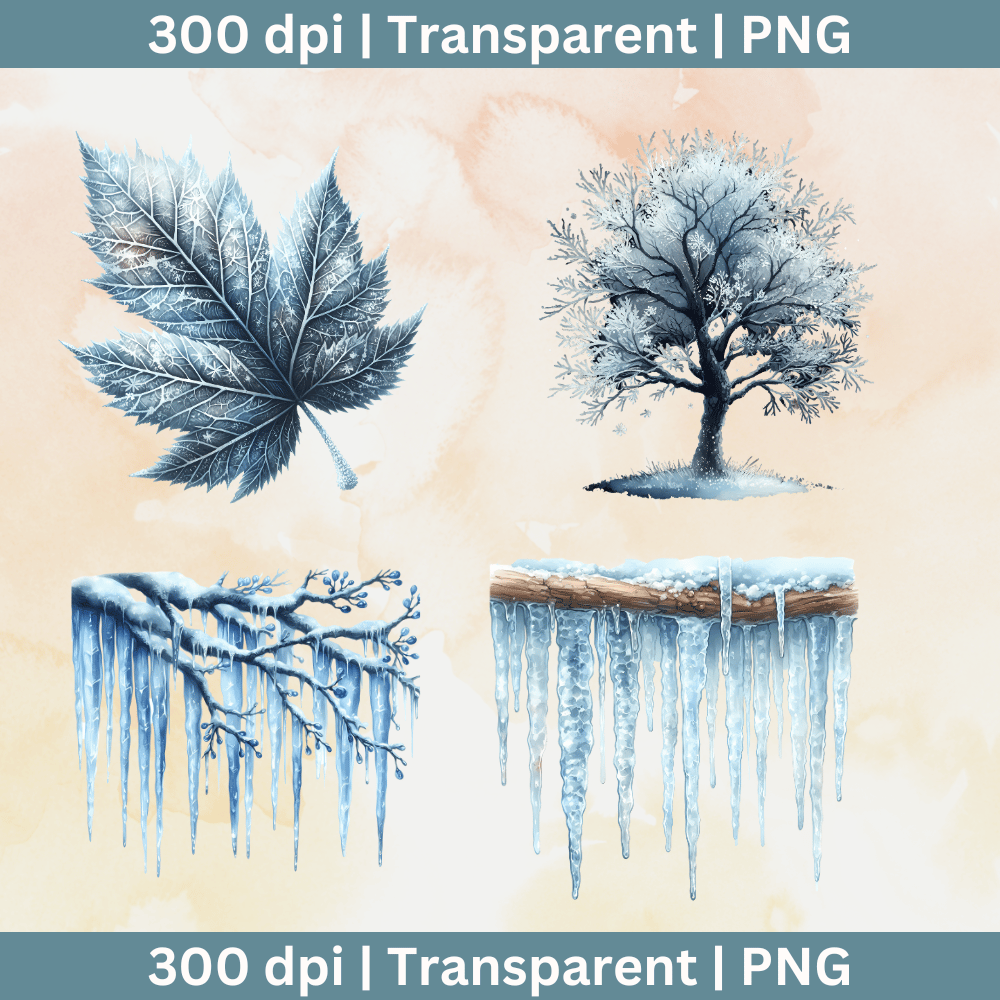 - Winter tree clipart, icy details, mountain scenes, snow-dusted cabins, and more
