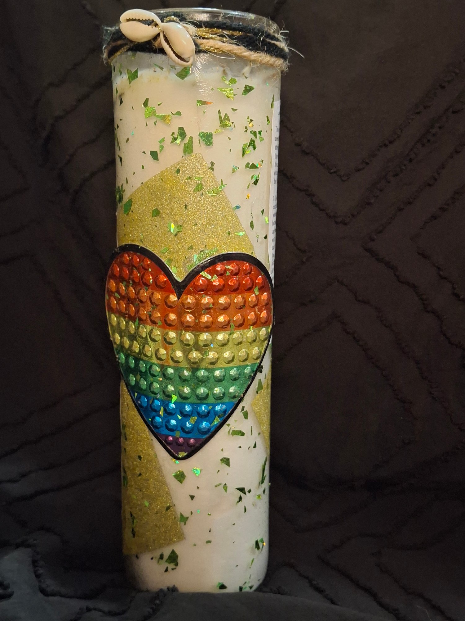 A radiant celebration of love in all its forms. This candle is meticulously crafted to strengthen the bond between LGBTQIA+ partners, infusing your space with energy that affirms authenticity, commitment, and joy. Light it together to honor your journey, amplify your connection, and surround your relationship with protective, proud, and unifying energy.