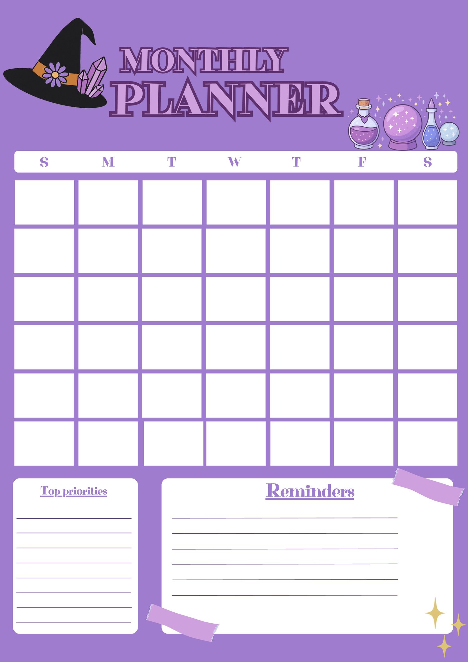 Stay aligned with both your goals and your intuition using this Witchy Monthly Planner. Designed with mystical elegance, this planner blends functionality with magical charm, making it the perfect tool for mindful living and intentional planning.