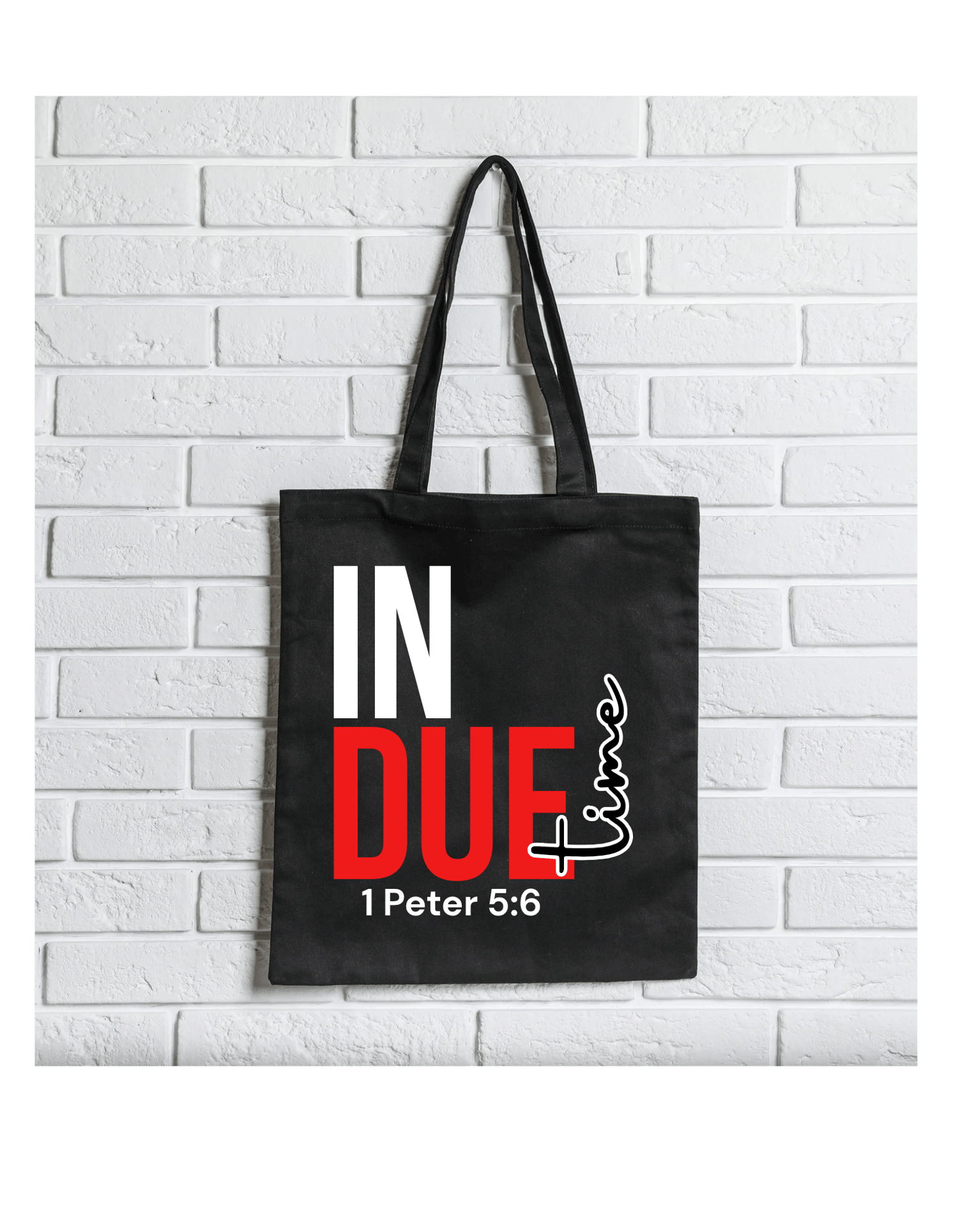 Carry your faith with style and purpose. Our "In Due Time" Christian Tote Bag is more than just a bag—it’s a daily reminder of patience, trust, and God’s perfect timing. Crafted from durable, eco-friendly material, this spacious tote is perfect for books, journals, groceries, or everyday essentials.