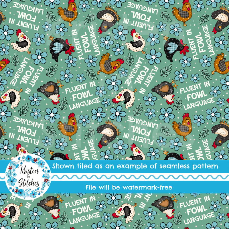 Fluent in Fowl Language Seamless Pattern, Sarcastic Chickens