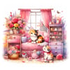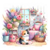 This digital product includes 10 sheet (each sheet contains 6 images) of Cozy Cat Haven Clipart in JPG format, 3000x5000 px size.