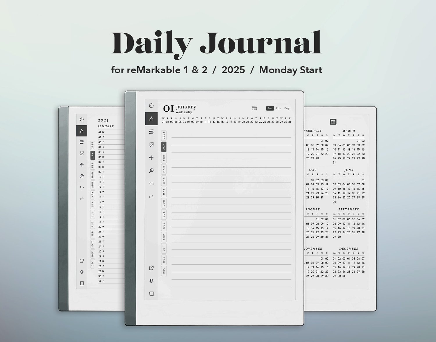 2025 Daily Journal for reMarkable 2 | Monday Start