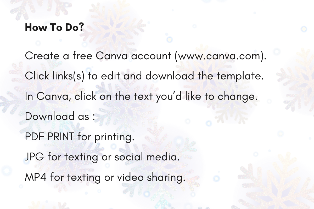 ★ When you’re all done editing your invitation, download the finished PDF/JPG/MP4 and print or share/send!