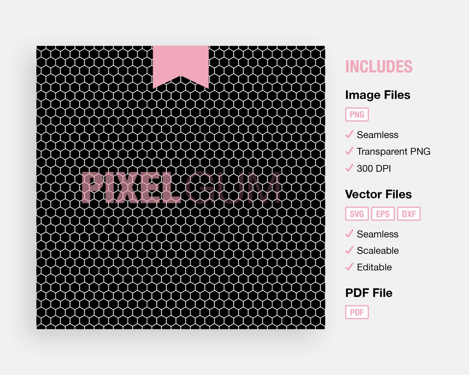This high seamless hexagon pattern comes in a variety of different file types for you to work with. If you would like to edit the vector files, please be sure the program or software you are using is compatible with at least one of the file types below. This pattern is perfectly seamless, which makes it great for all kinds of projects—including backgrounds, Print-on-Demand, cutting machines, textile patterns, wall papers and beyond! Please review the terms of use if you will be purchasing this artwork for commercial purposes.