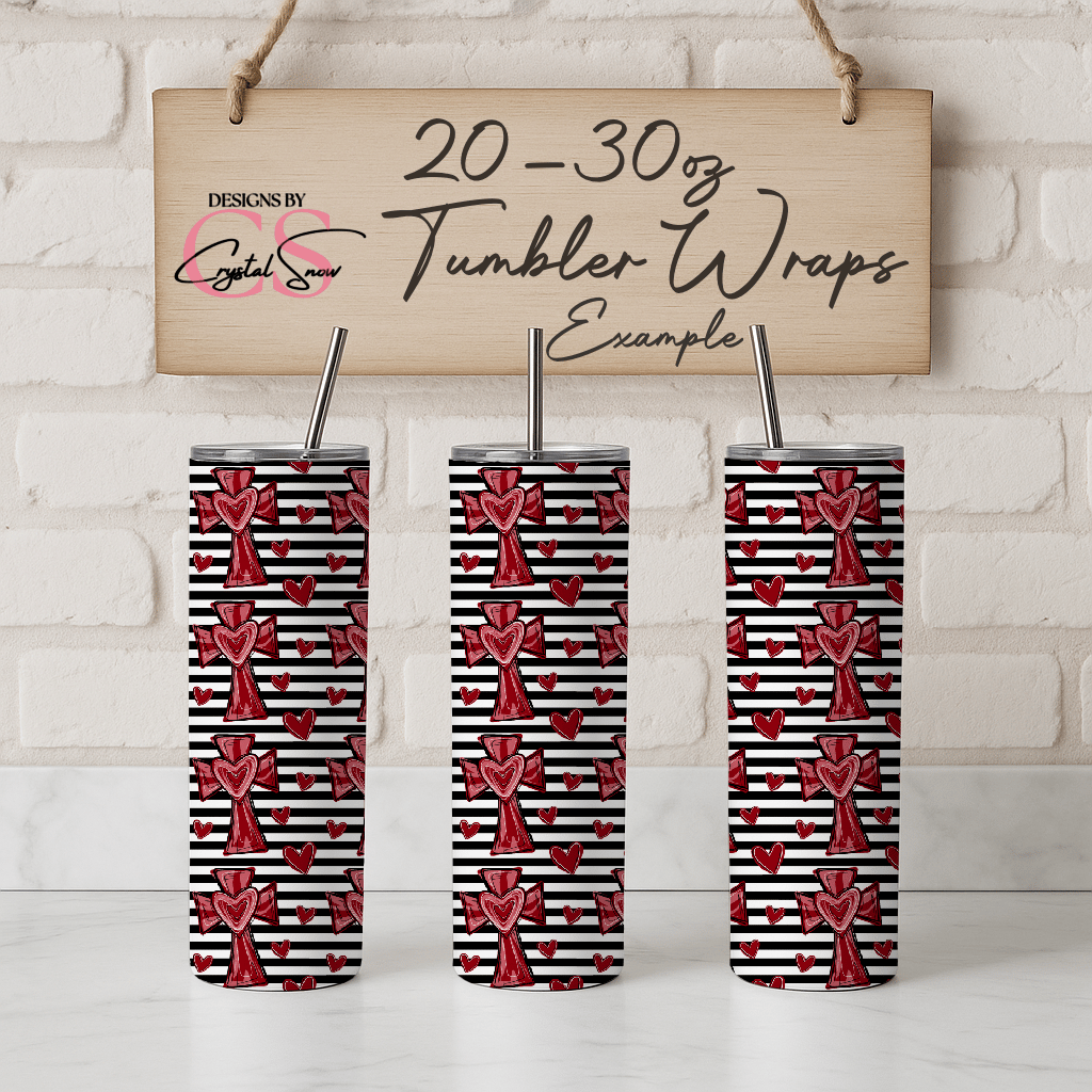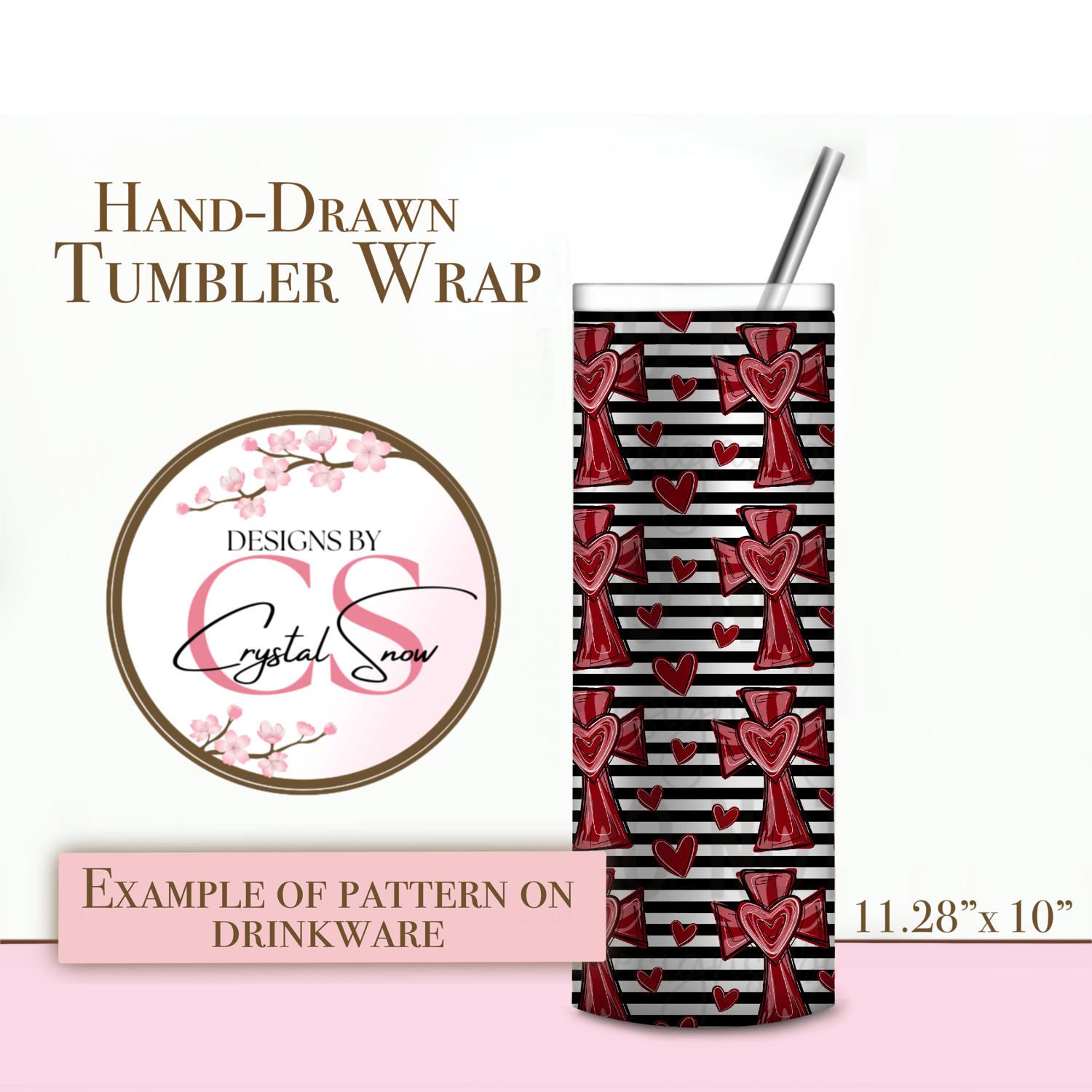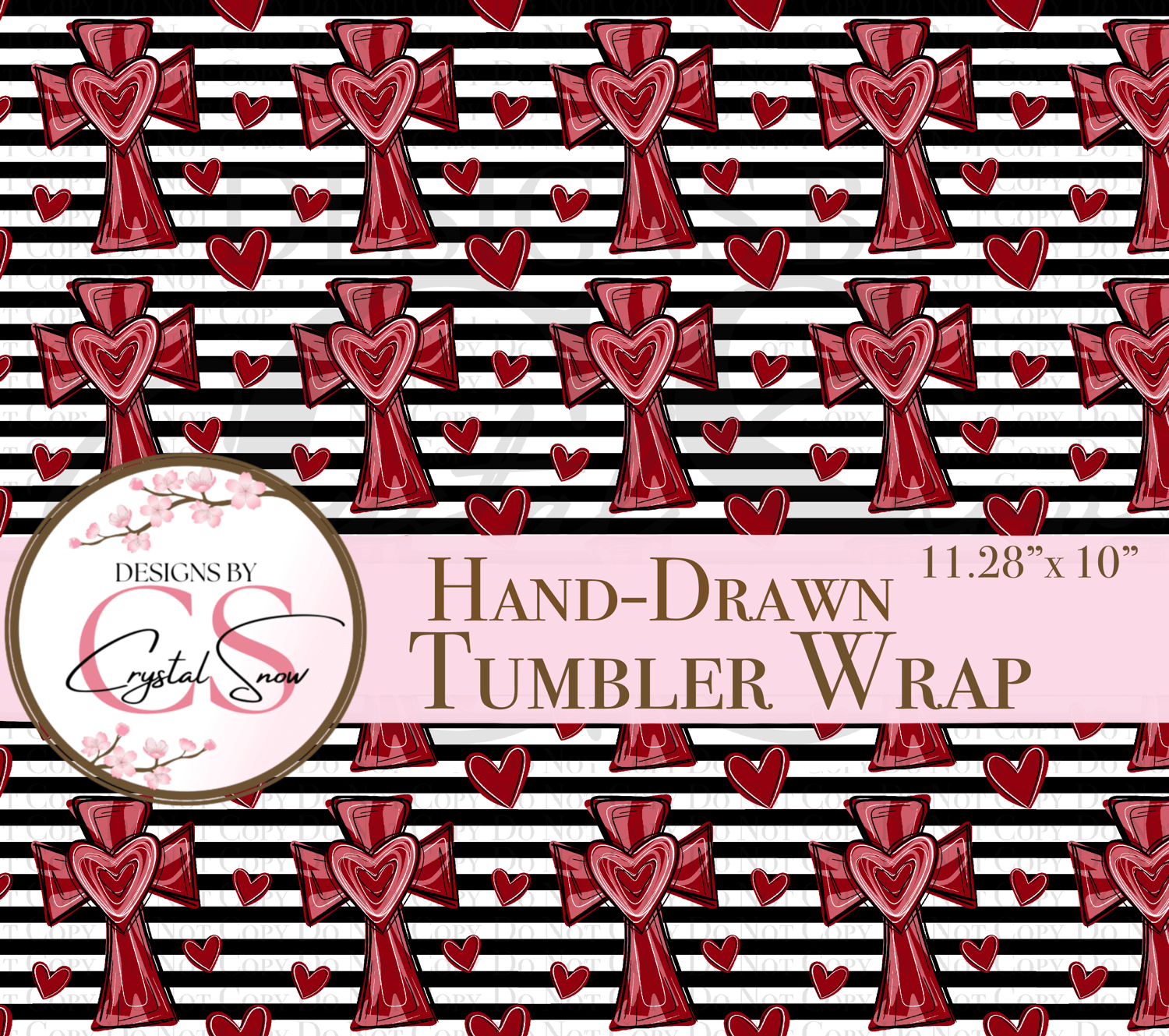 Bold stripes, hand-drawn hearts, and a striking cross design come together in this Valentine-inspired tumbler wrap made to stand out, not blend in.