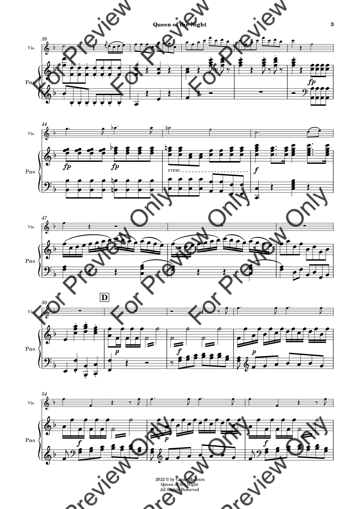 Queen of the Night from Die Zauberflote (The Magic Flute) by Wolfgang Amadeus Mozart. Arrangement for Violin and Piano. With Full Score and Individual Parts. Have fun!