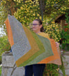 Anglesqueville est un châle asymétrique tricoté avec trois couleurs.