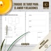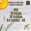 En este PDF encontrarás 10 tiradas que tienen que ver con nuestras relaciones tanto amorosas como con nosotros, cada una tiene su explicación y espacio para que escribas lo que vayas descubriendo en cada lectura.