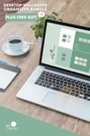 Easily redesign your work and study space with these green minimal wallpaper decor for your computer. My Theme’s Desktop Organizer Wallpapers and themed desktop icons bundle, both Macbook & PC friendly, will help you to stay focused, productive and inspired!