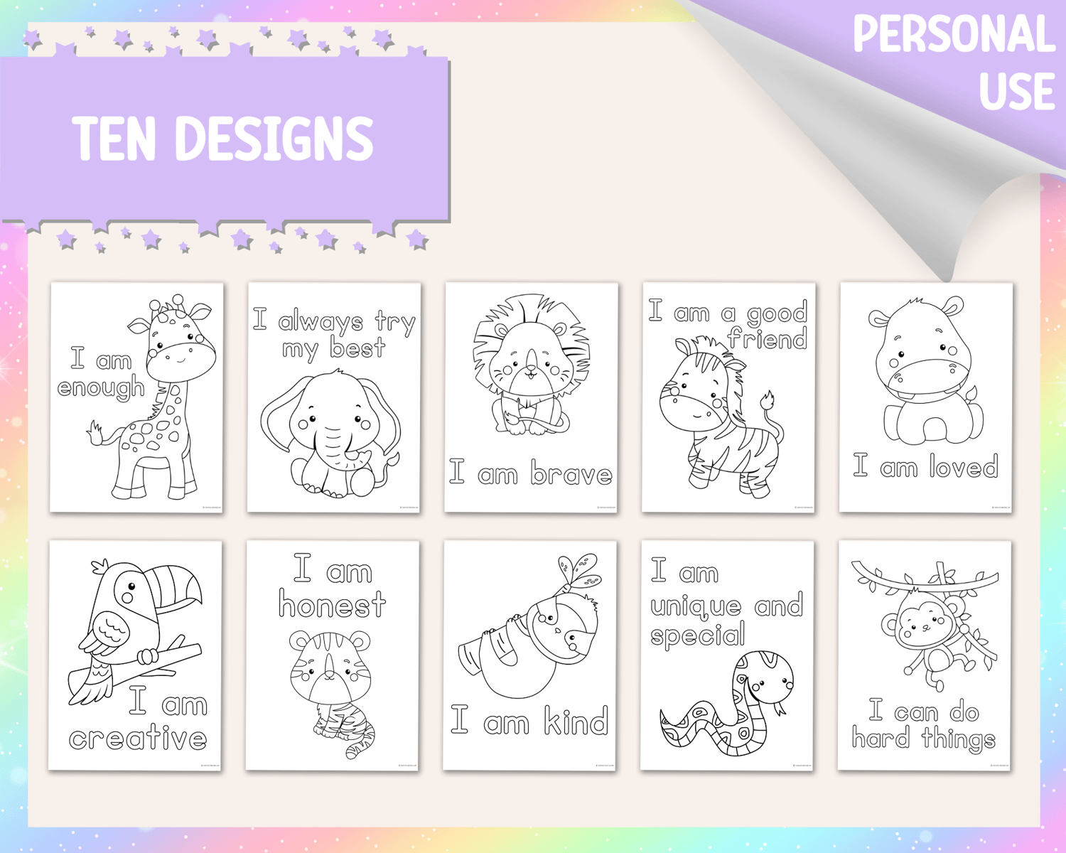 Animal Affirmations Colouring Pages (Personal Use)