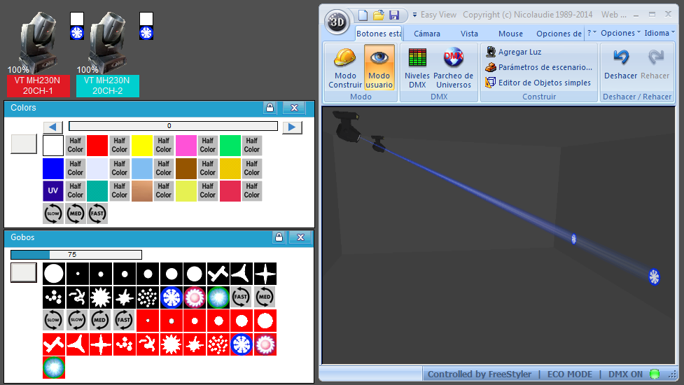 - Esta librería NO reemplaza al Fixture de Freestyler o QLC+, sólo es para ver la representación 3D. Es decir, HAY QUE TENER YA EL FIXTURE DE FREESTYLER o de QLC+ para controlar el equipo real.