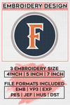 Ncaa Cal State Fullerton Titans Circle Logo Embroidery Design Files, Ncaa Logo Embroidery Files, California State University, Fullerton Logo Embroidery Design, NCAA CSUF Titans Machine Embroidery Design, Digital Download