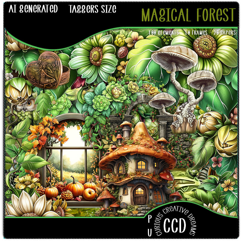 magical Forest comes with 100 elements , 10 frames ,20 Papers . AI Included in this kit , Personal Use , taggers size . Tube is not included in this kit