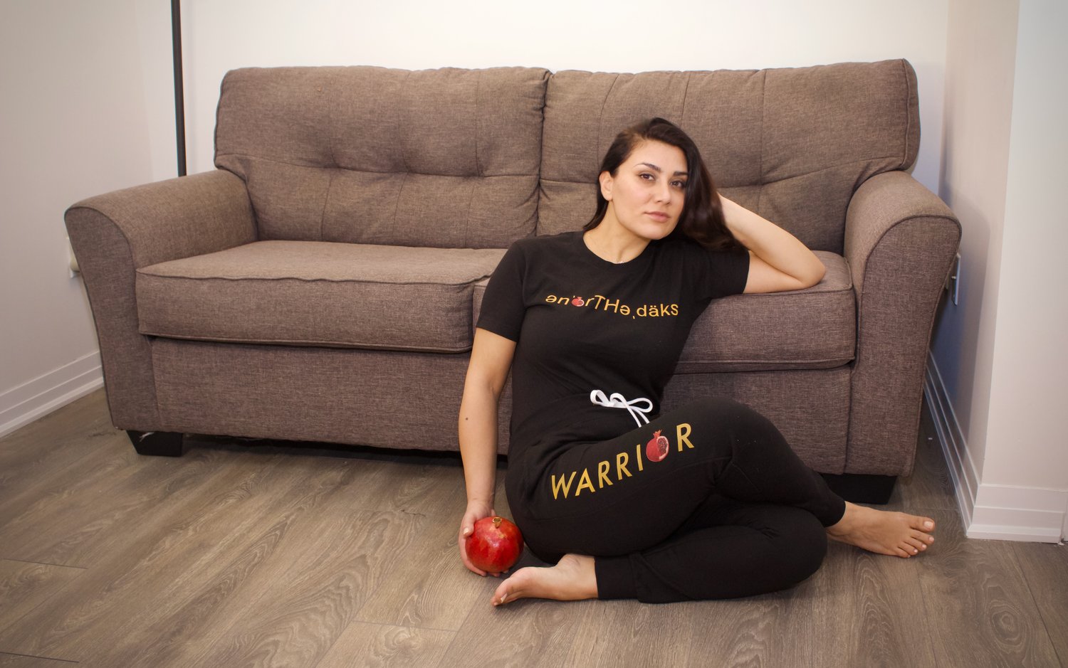Print: WARRIOR in gold, with the pomegranate as the “O”