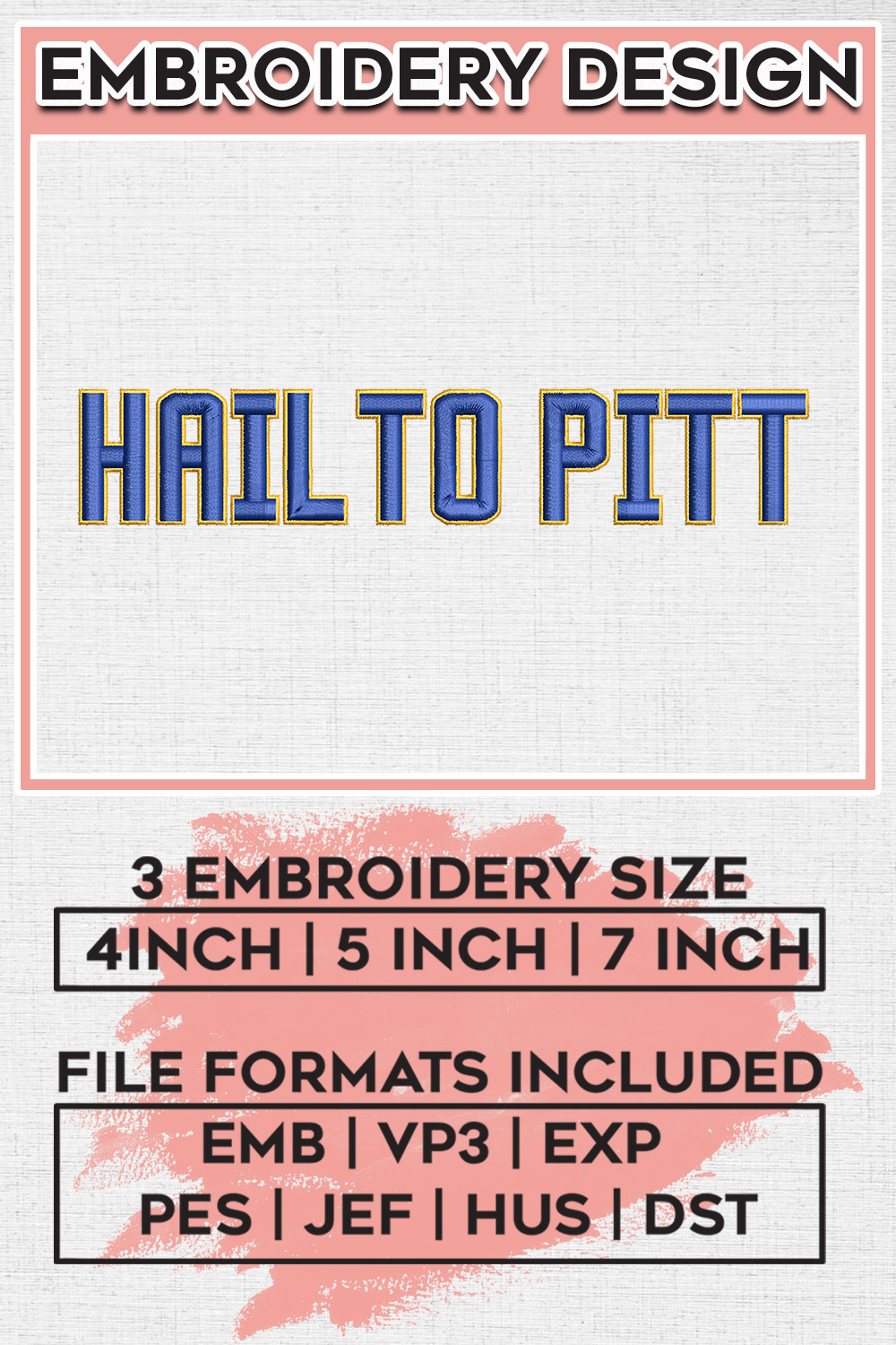 Hail To Pitt Football Team Logo Embroidery Designs, NCAA Pittsburgh Panthers Machine Embroidery Files, NCAA Logo embroidery designs, Ncaa Pittsburgh Logo, Digital Download