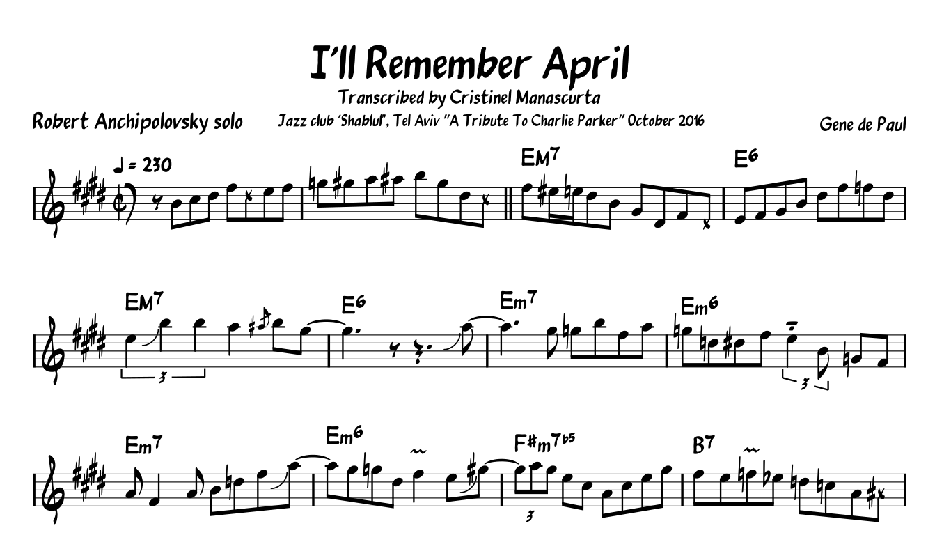 Robert Anchipolovsky - I'll Remember April, alto sax