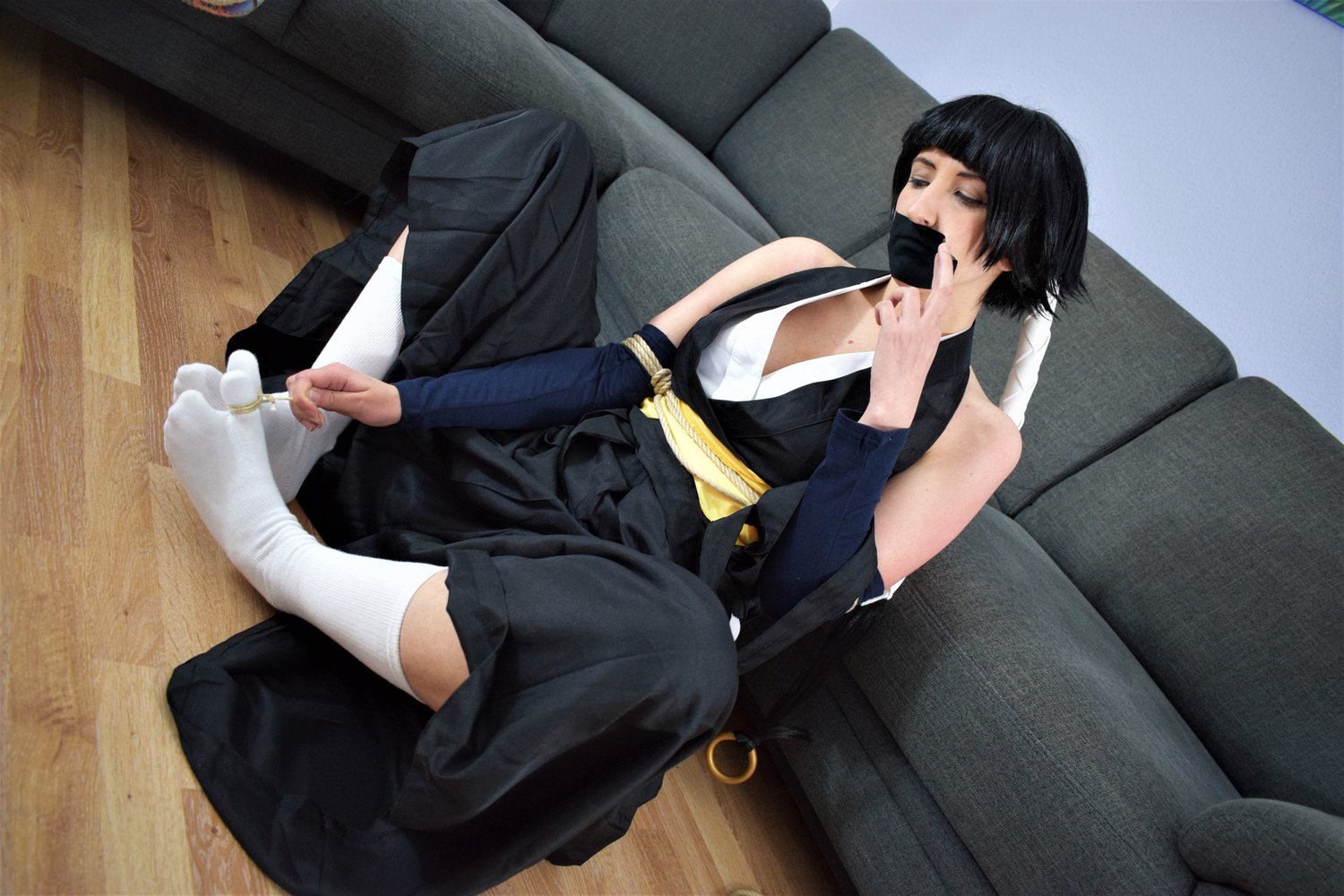 Picset includes: Tapegag, Kinesio tape, rope bound, shibari tie, socked feet, tabi socks, toe tie, hogtie, gagging, ungagging