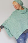Buttons are placed on two edges of the rectangle, so you can button it up as a poncho or as a cowl. The buttons and buttonholes also give you lots of options for wearing.