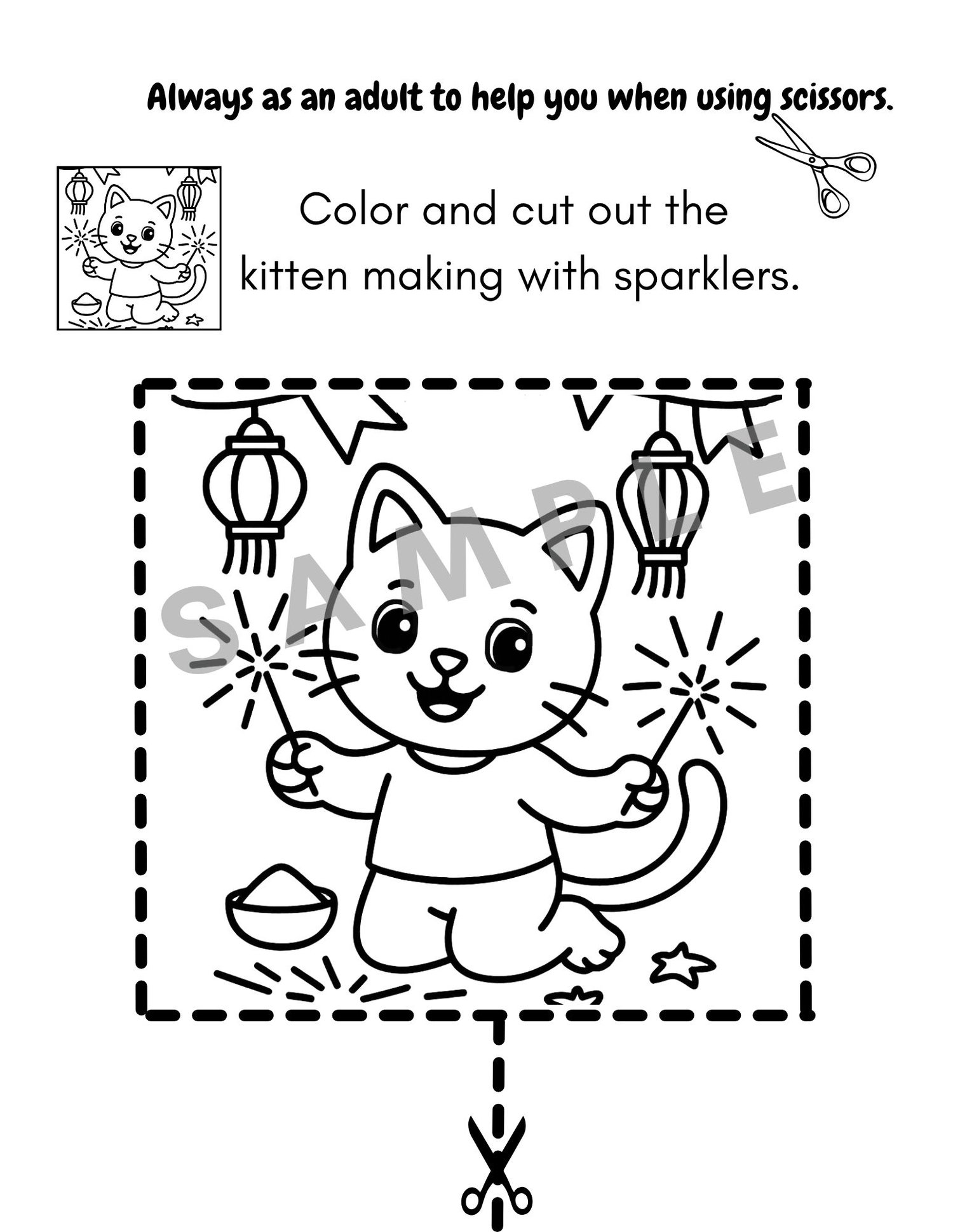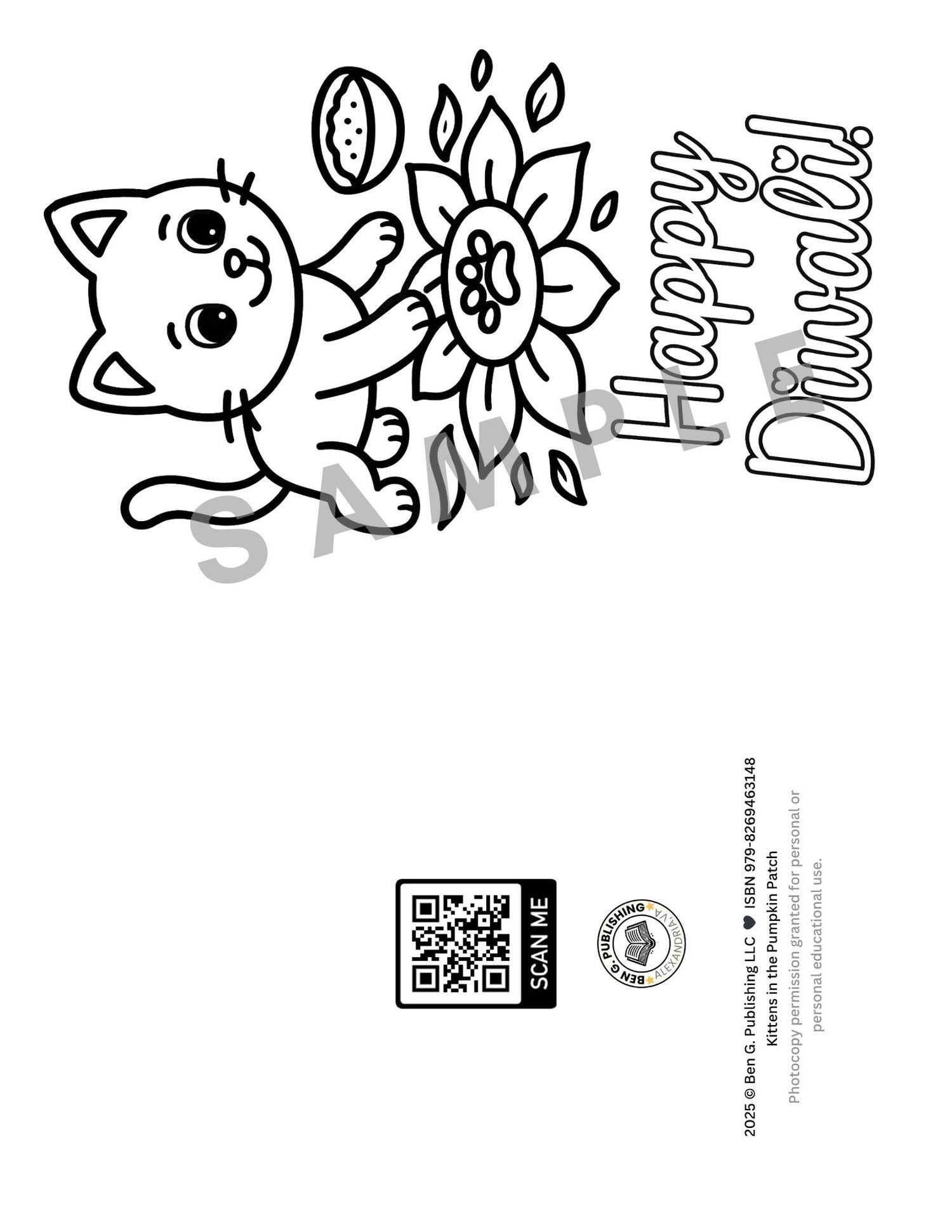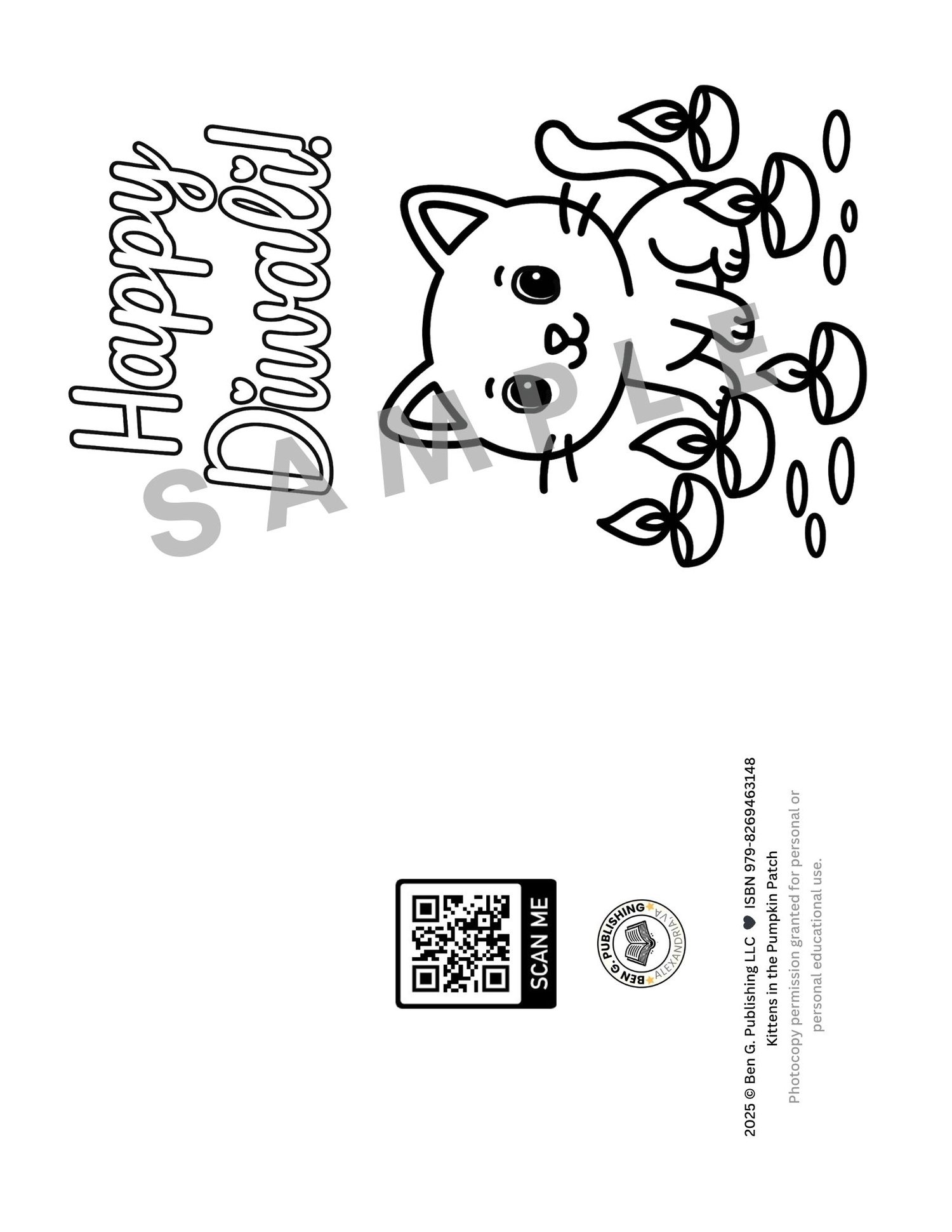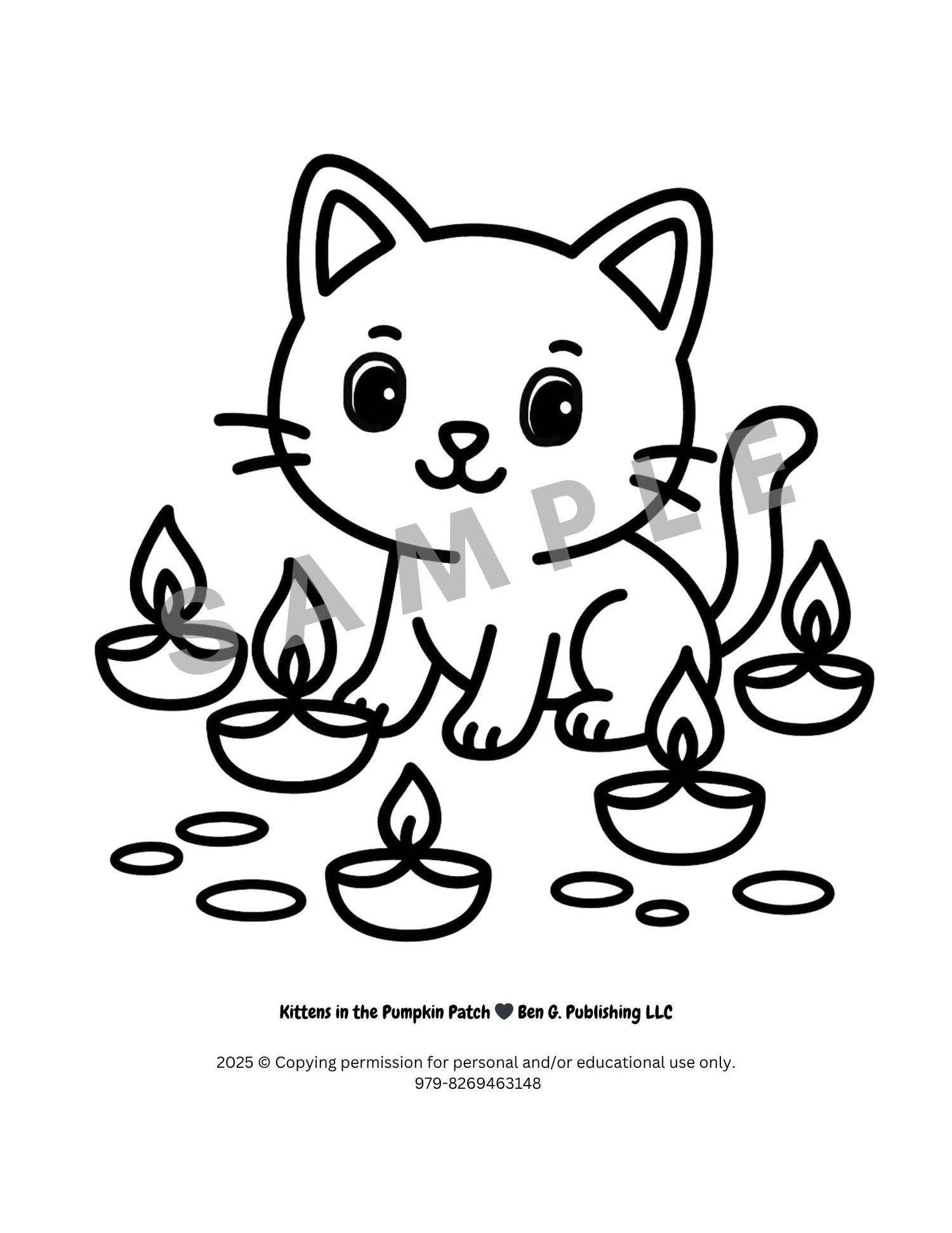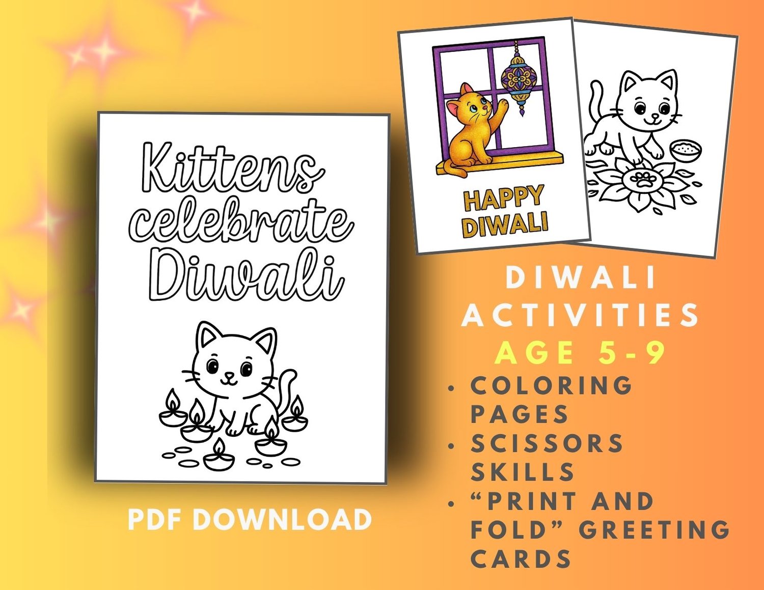 Created by a classroom teacher, these are activity pages your little ones will love — from diyas and rangolis to adorable festive kittens. This download includes 5 coloring pages, 4 scissors skills pages, and 4 "print and fold" greeting cards." Formatted for standard US letter size paper 8.5 x 11".
