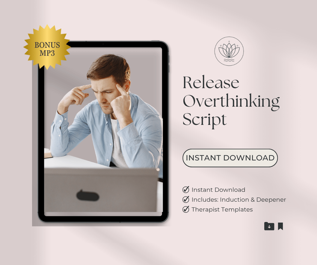 Designed with mental wellness in mind, this Release Over-thinking Hypnosis Script offers therapists a gentle yet effective tool to help clients quiet racing thoughts and foster mental clarity. This printable, easy-to-use script supports sessions focused on anxiety, overwhelm, and cognitive overload, guiding clients to release intrusive thinking patterns and reconnect with inner calm. Ideal for hypnotherapists, coaches, and wellness practitioners, this digital download is a versatile addition to your therapeutic toolkit—perfect for in-session use or as a take-home self-hypnosis aid.