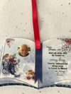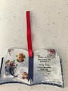 Measures approx 4.5 inch wide by 2 inch high excluding the ribbon.