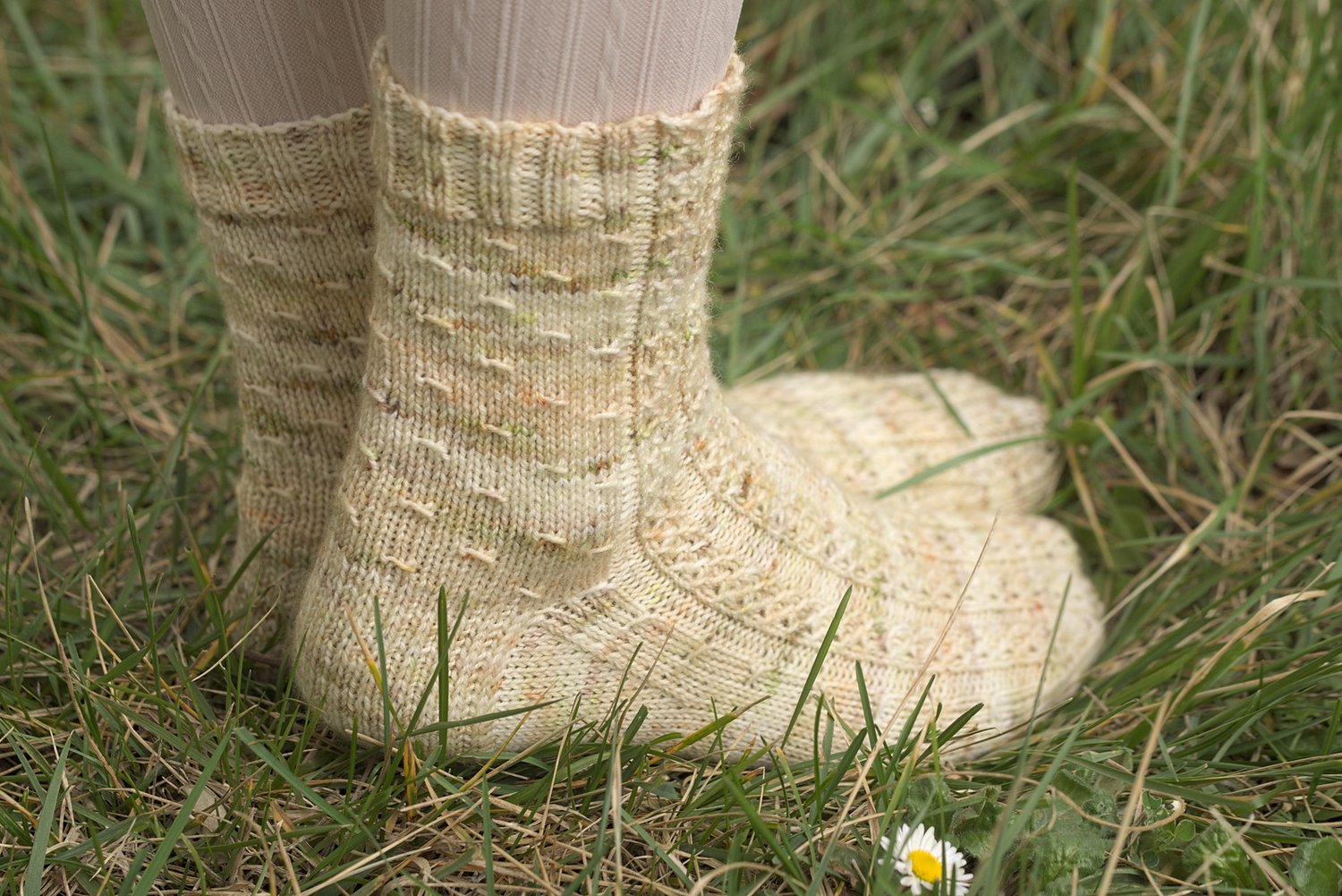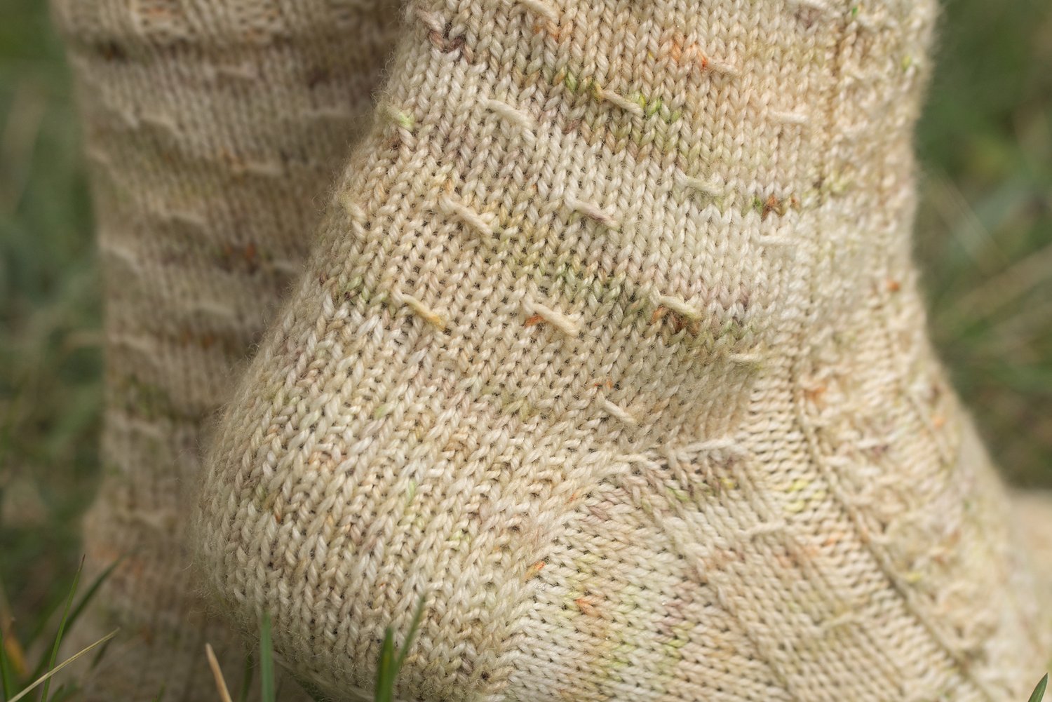 This pattern features very simple (and addictive!) textures using slipped stitches. It uses a cuff-down construction and a slipped-stitch heel (for both prettiness and sturdiness!).