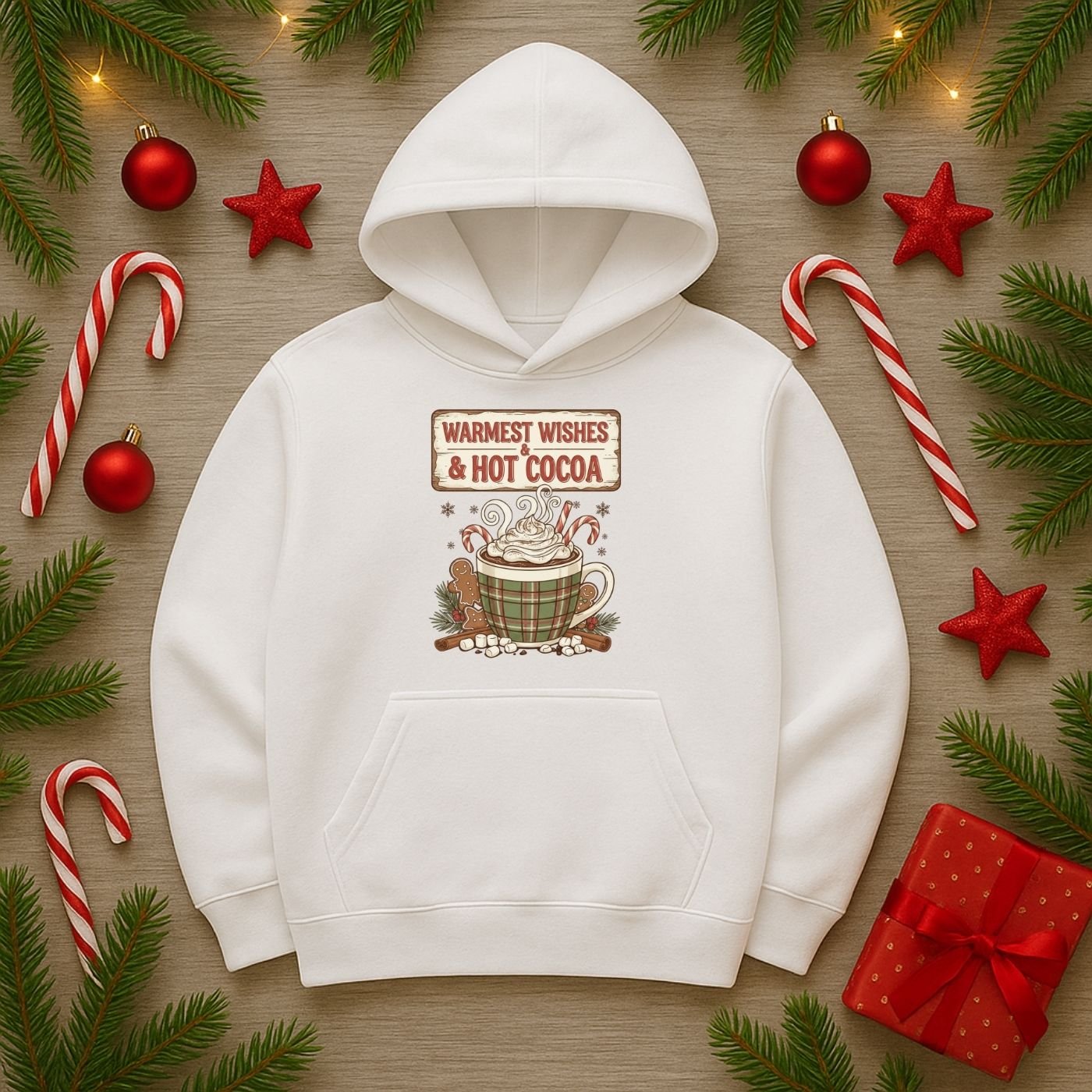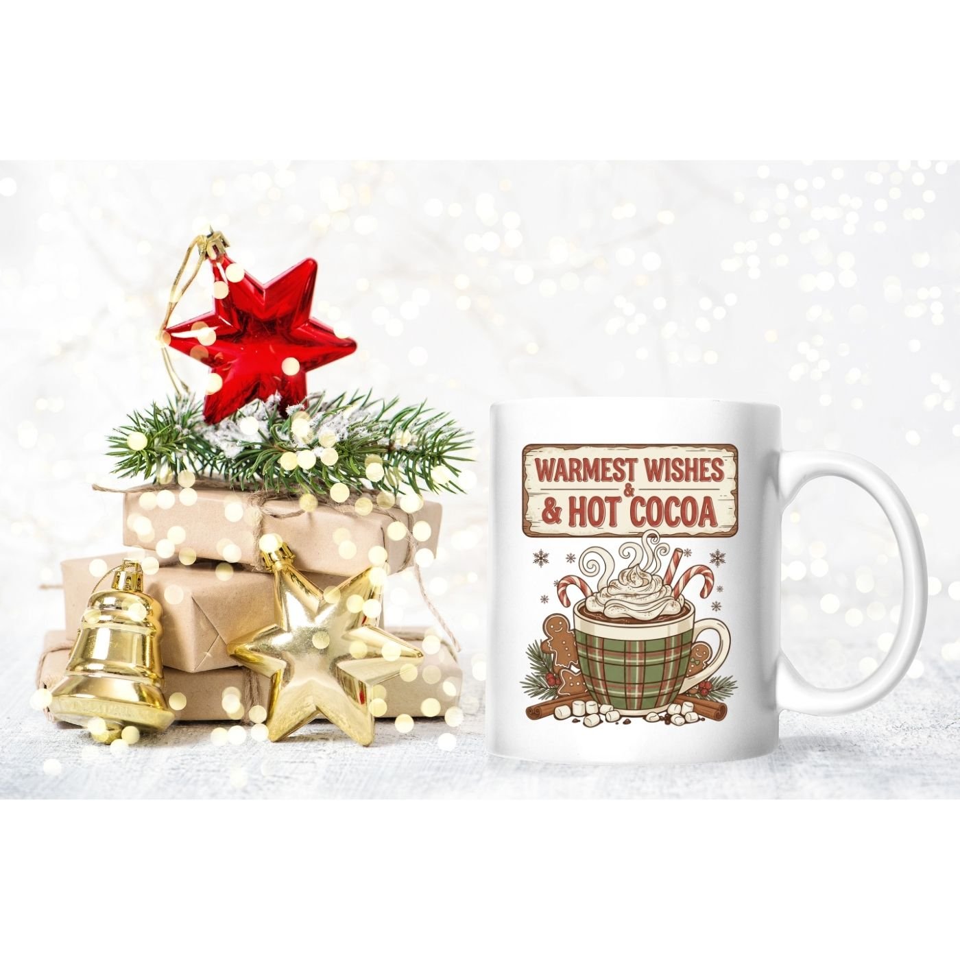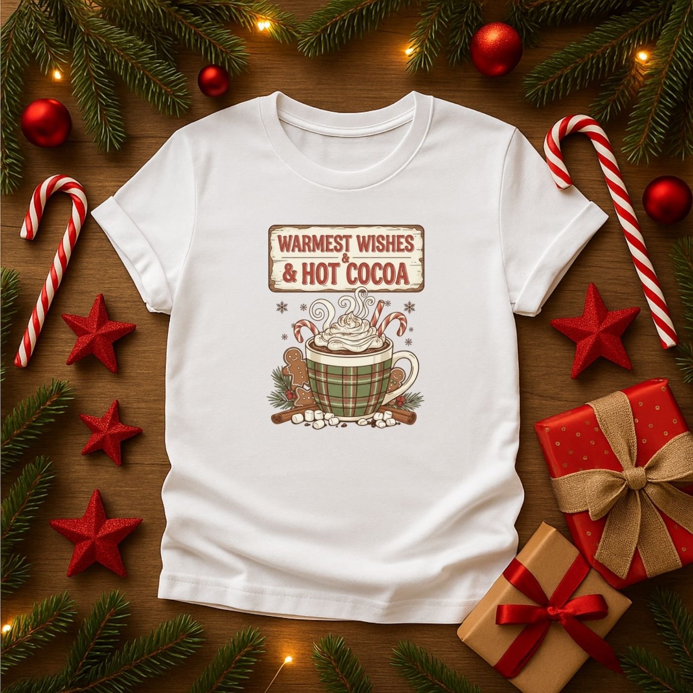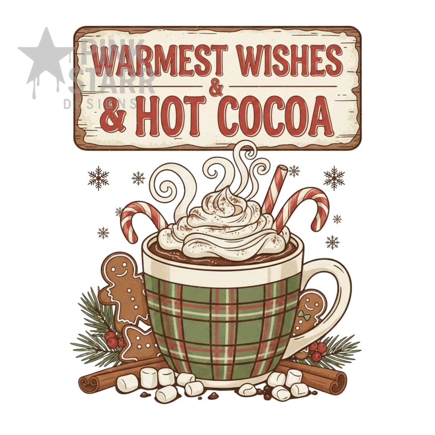 Bring warmth and cheer to your holiday creations with this Warmest Wishes & Hot Cocoa sublimation PNG! Featuring a festive plaid mug filled with whipped cream, candy canes, and gingerbread cookies, this cozy design is perfect for Christmas mugs, shirts, signs, and more.