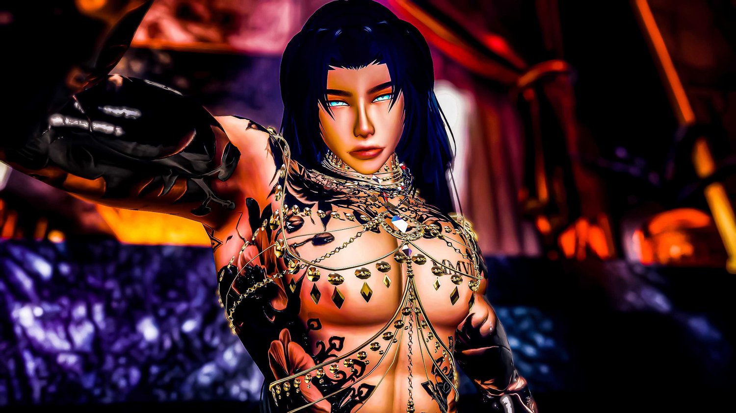 Accessories: Blindfold: Aika / Nose Piercing: Naudine / Ski Mask: Top Prospect / Chain Arm, Body & Wrists: Ssukiii / Chains: GM / Harness: Brian's Kingdom / Scarf: HoloExe / Ring & Bracelet: PokerBlunders / Necklaces: Ruski / Snake Necklace: AresVR / Claws: Buu / Ears & Tail: DaCozyGremlin / Elf Ears: ThiccWitch / Face Metal: GM