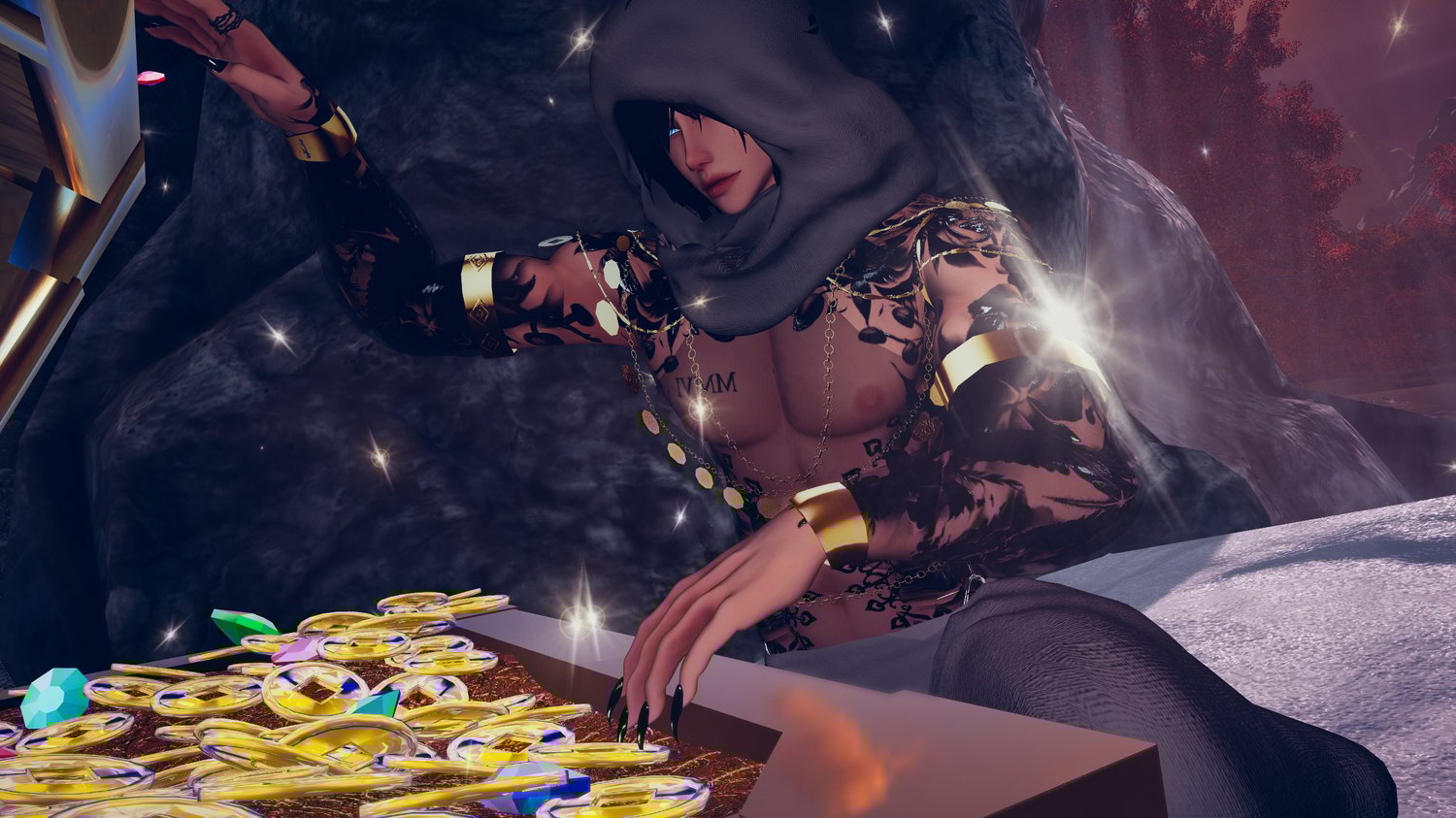 Particles / Props: Aura, Sparkle, Treasure Aura, Treasure Rain, Treasure Hands, Treasure Chest, Gem Flow and Chain Hands: Kismet / Moon Staff: AikaVR / Lighting Sliders: ARKHYPE / Gogo: Franada / SPS: By Scarlett