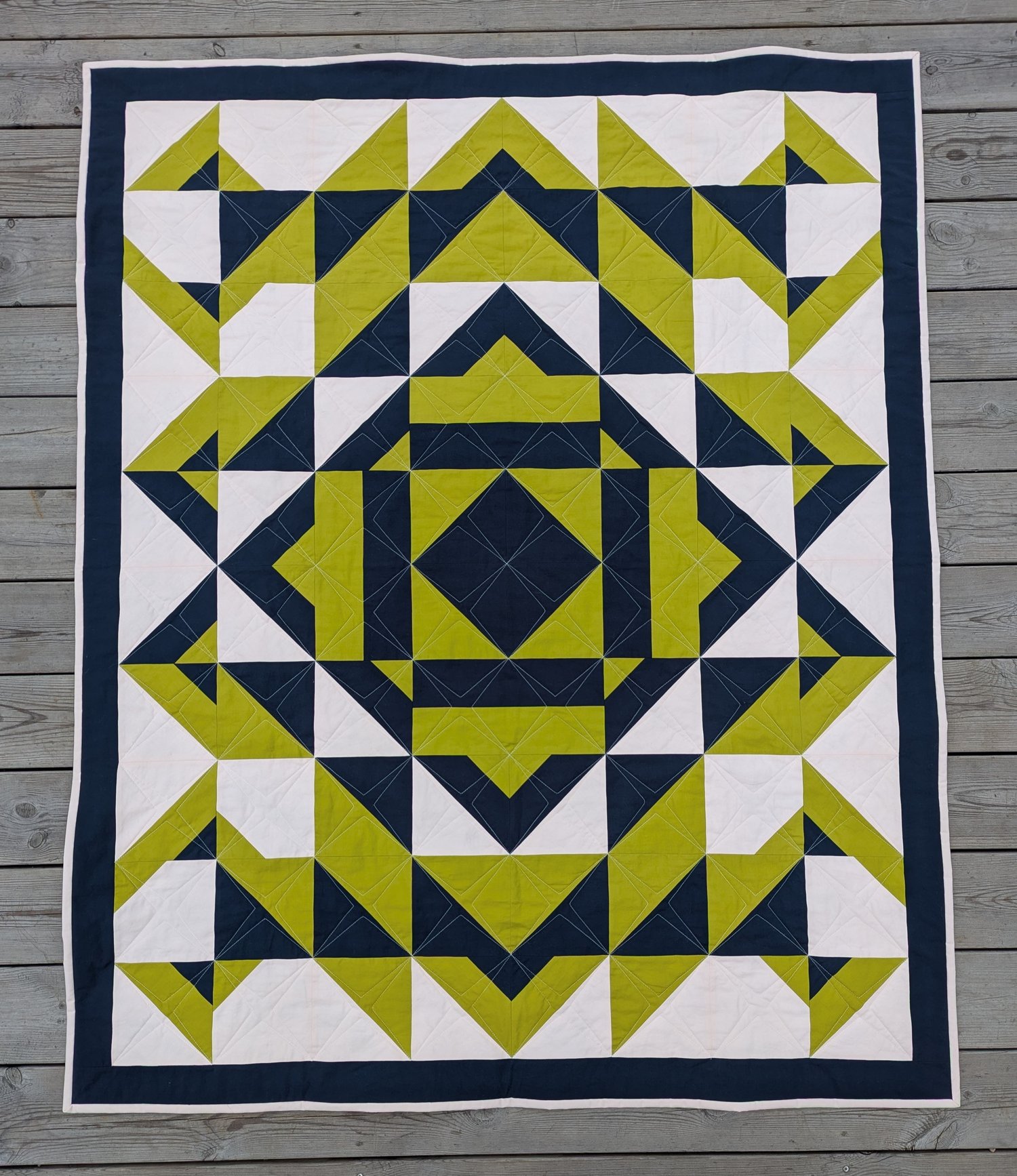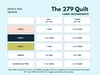 The 279 Quilt is a confident beginner friendly modern quilt pattern that comes in two sizes: Throw (68" x 84") and Baby (44" x 54"). You will receive fabric requirements, cutting instructions, and detailed piecing and assembly instructions.