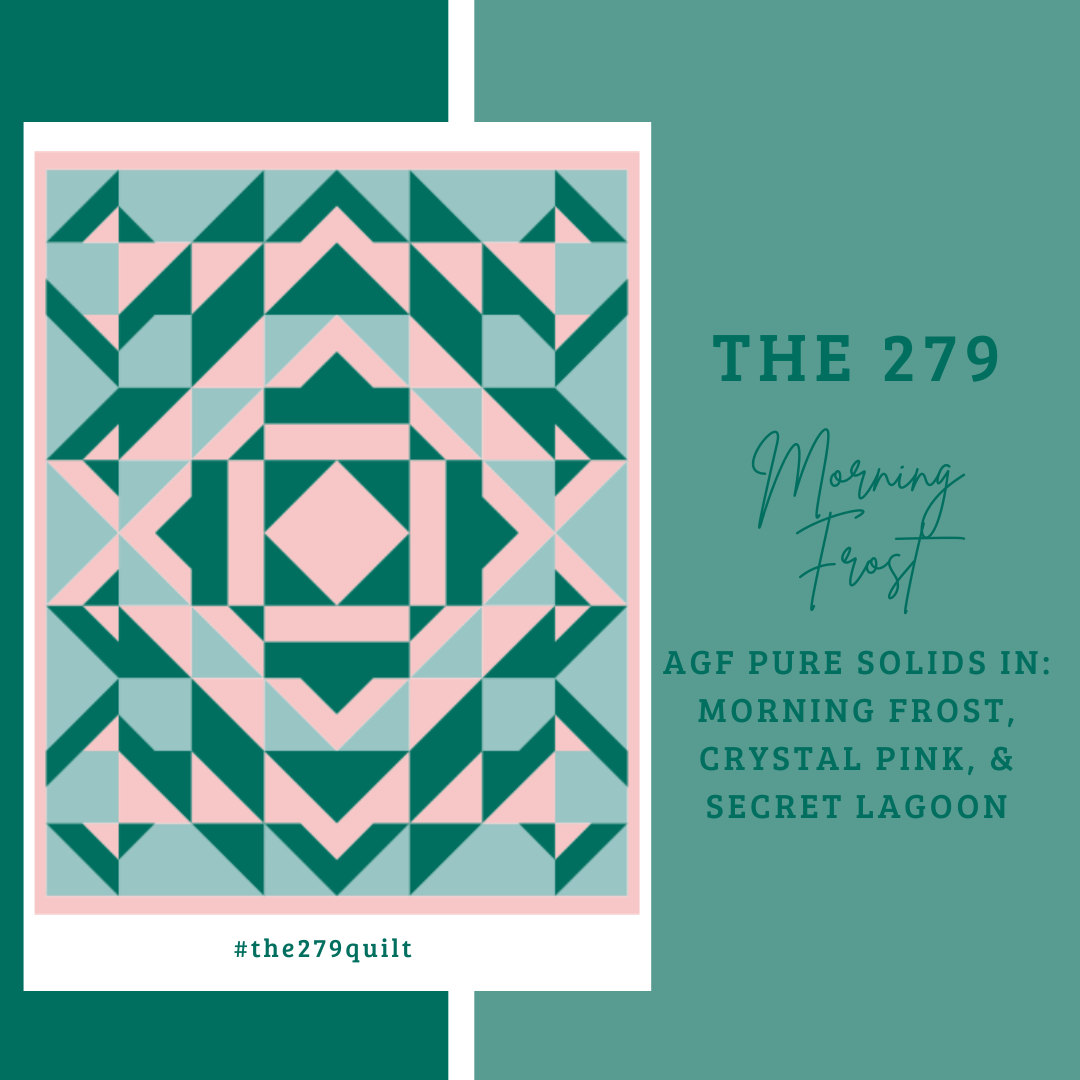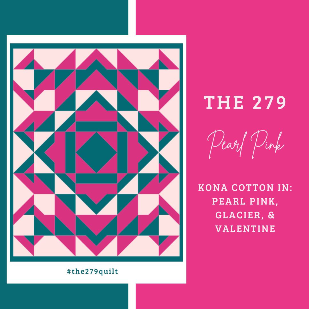 My version of The 279 Quilt is made with: Moda Bella Solids in Pale Pink, Navy, and Pesto. But I can't wait to see your own version of The 279 Quilt! Be sure to use the hashtags #the279quilt and #millieandbundesigns on Instagram so I can see what you have put together.