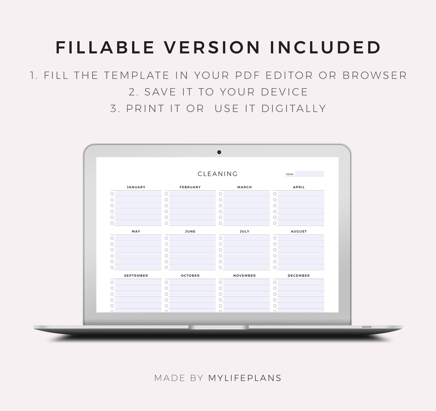 This is a printable yearly cleaning checklist — just download, print, and start using it right away.