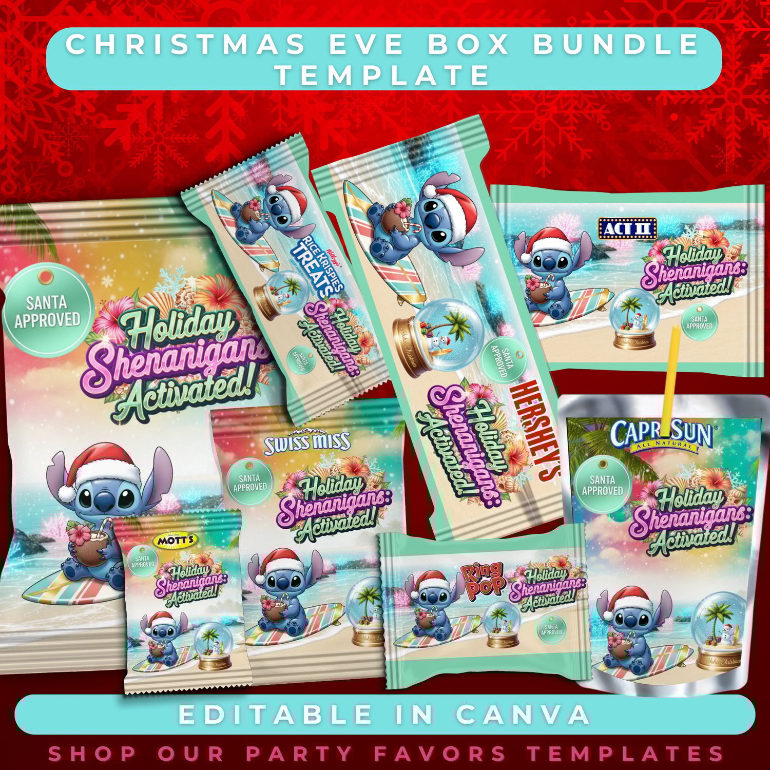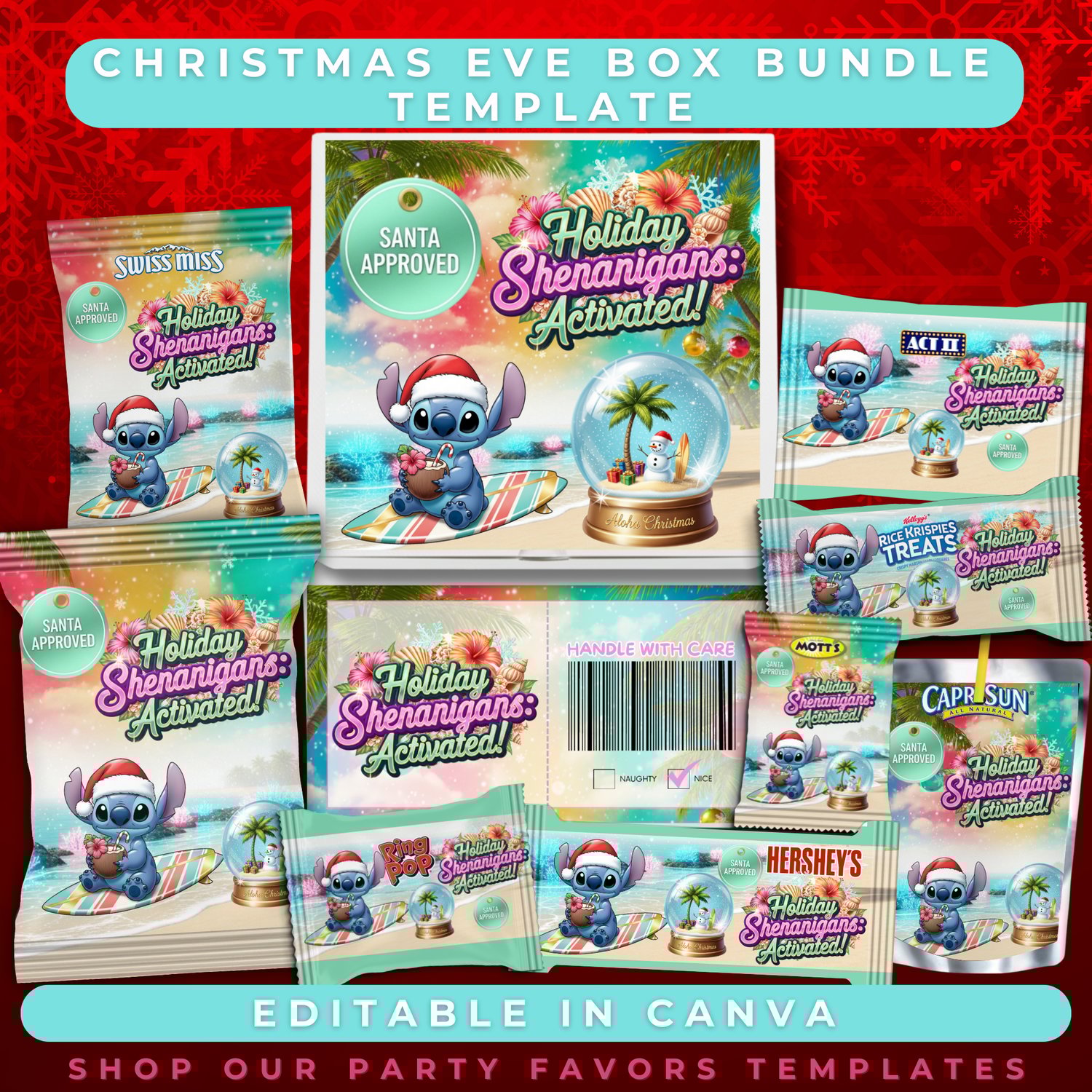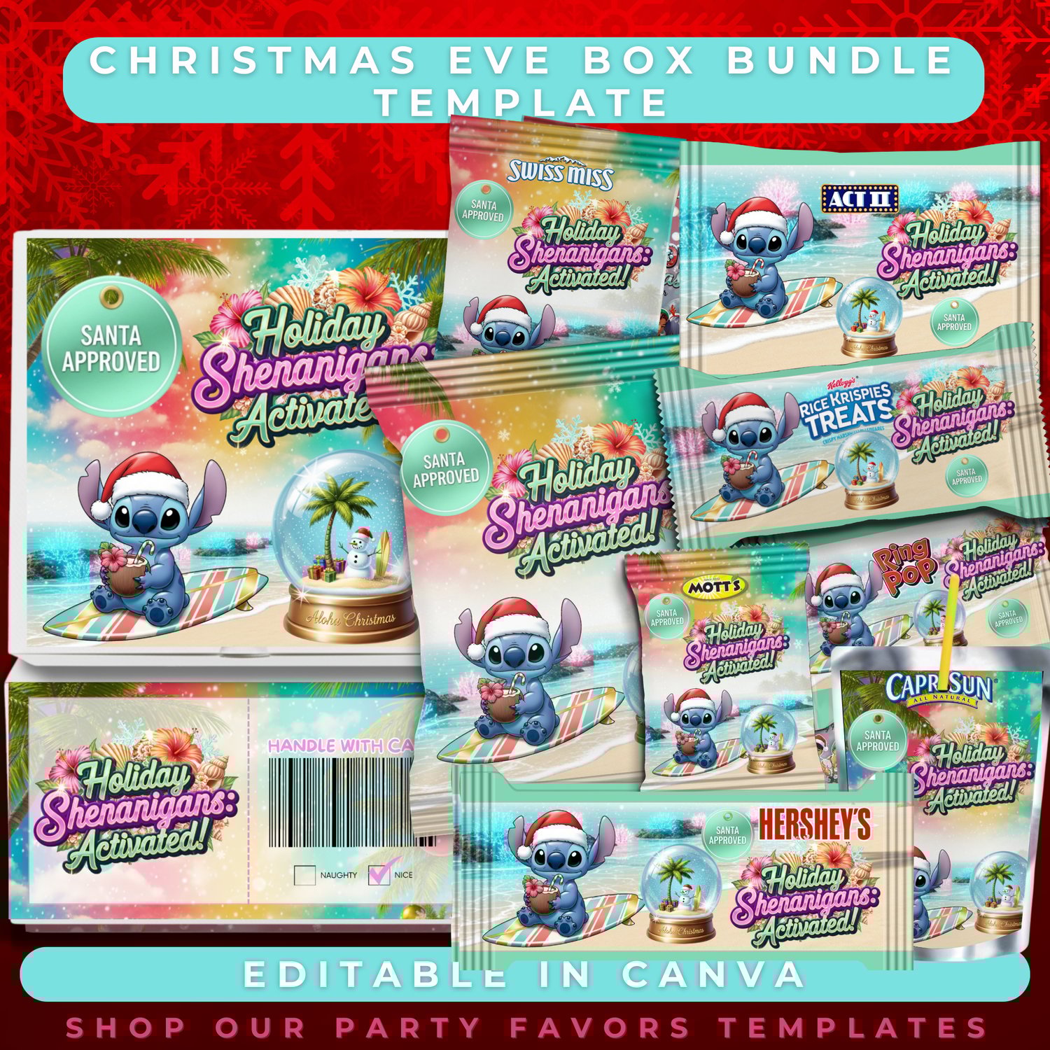 Bring some tropical Christmas mischief to your holiday with this adorable Christmas Eve Box Bundle Template! π