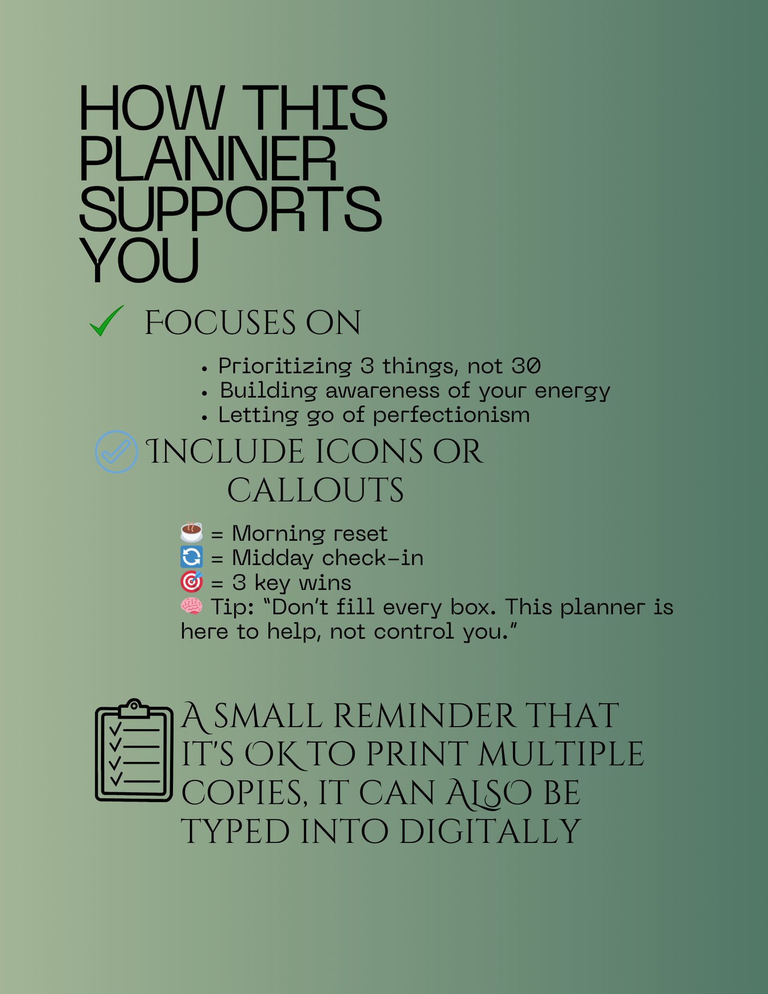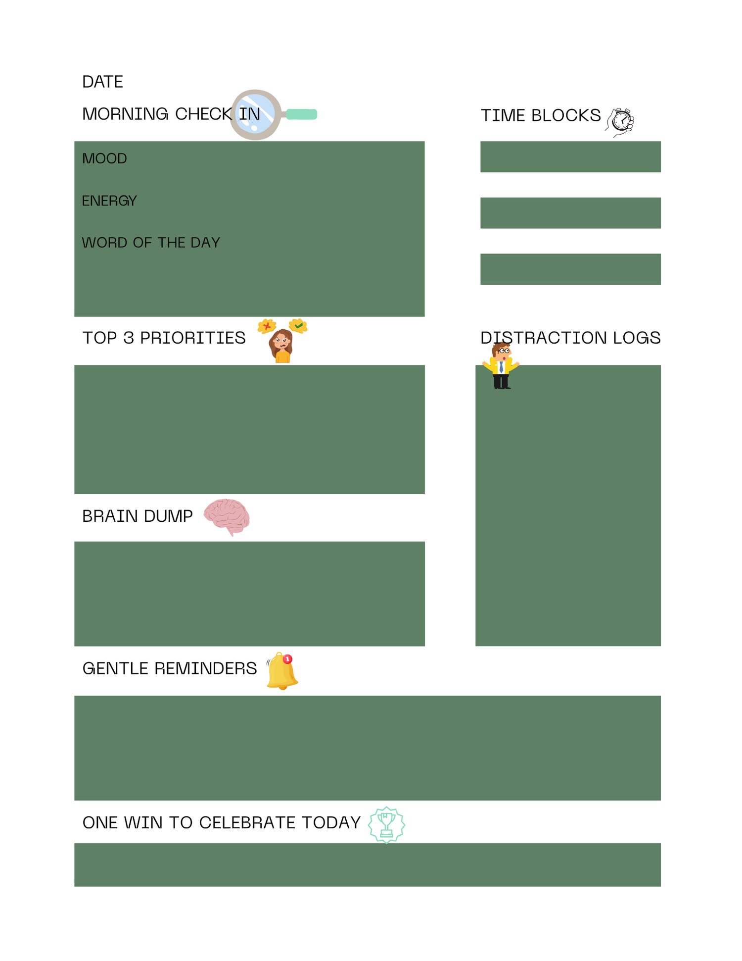 ✅ 7 daily planning pages (fill-in-the-blank for easy use)