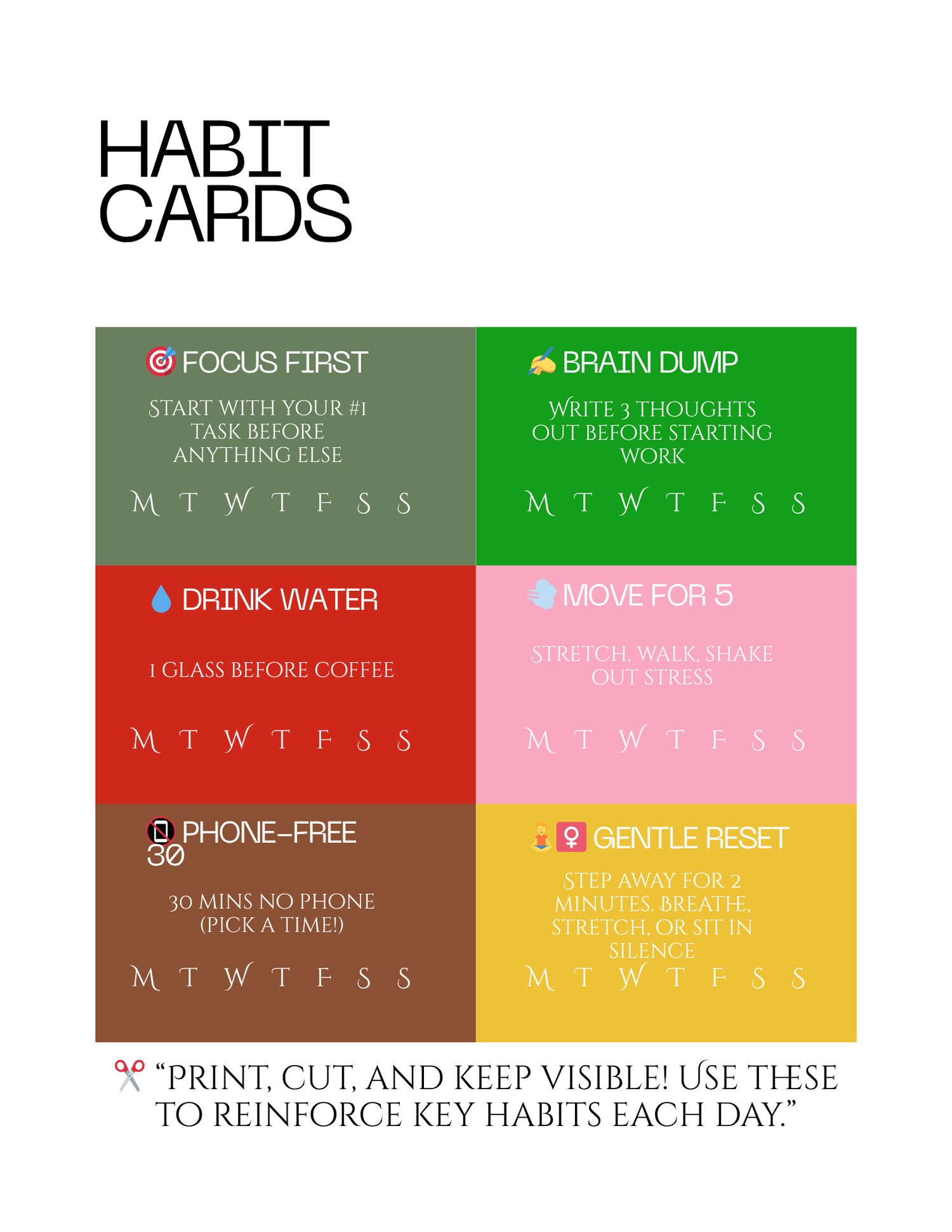 ✅ Bonus: 6 printable Habit Reinforcer Cards with mini trackers