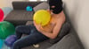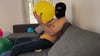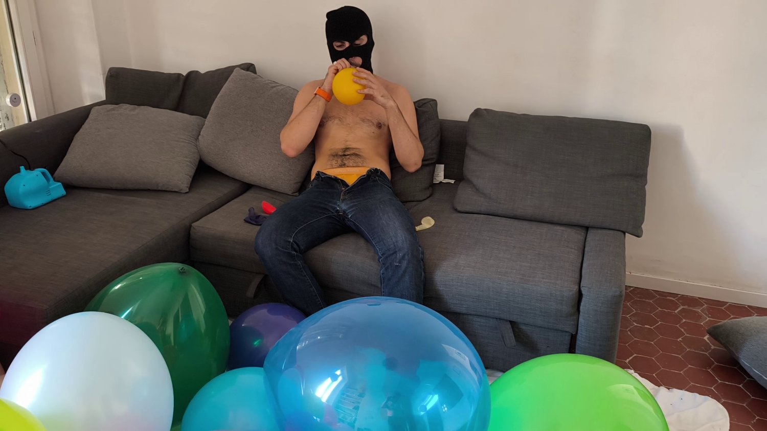 For this one he blow 3 balloons and rub them on his underwear before bursting them with his hands.