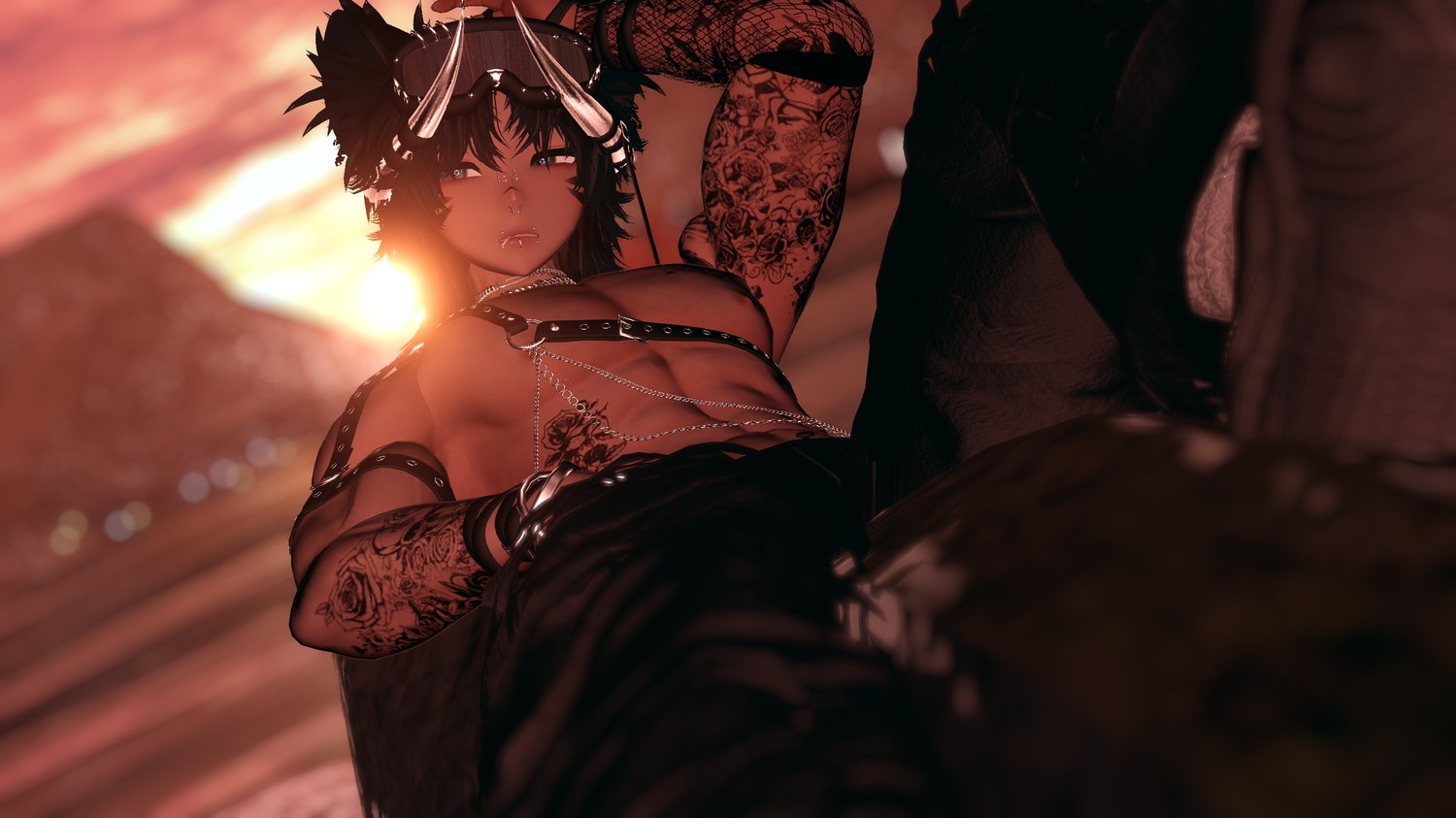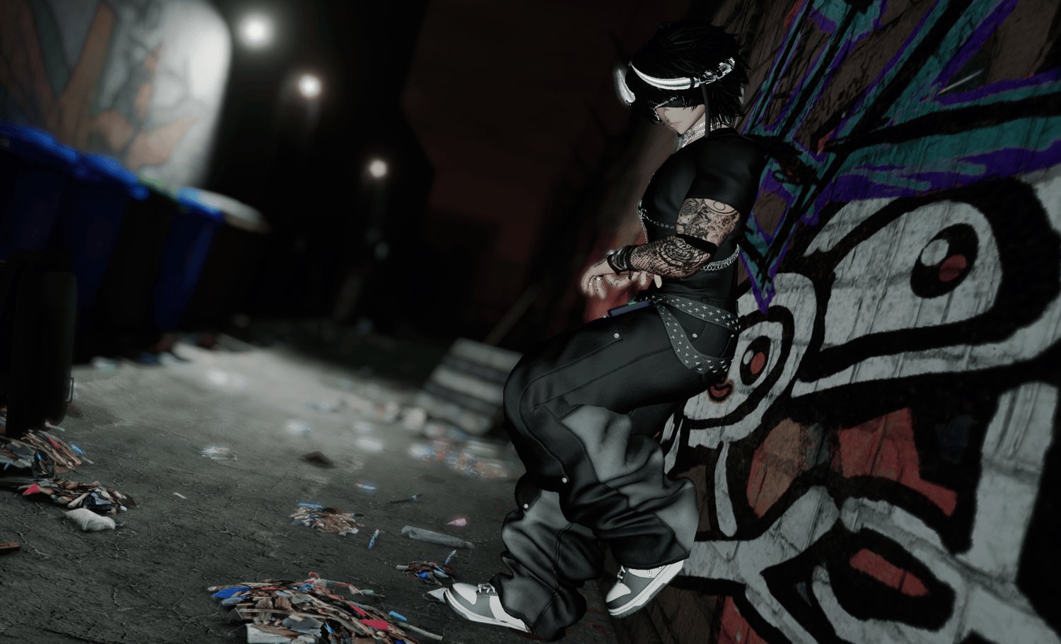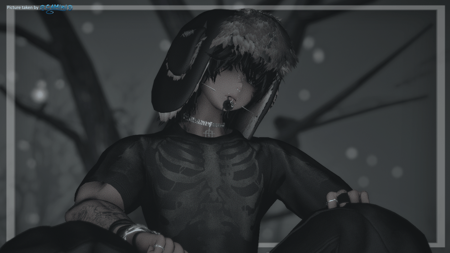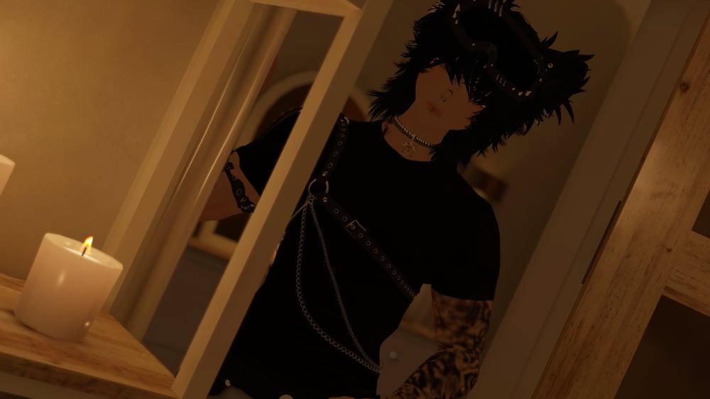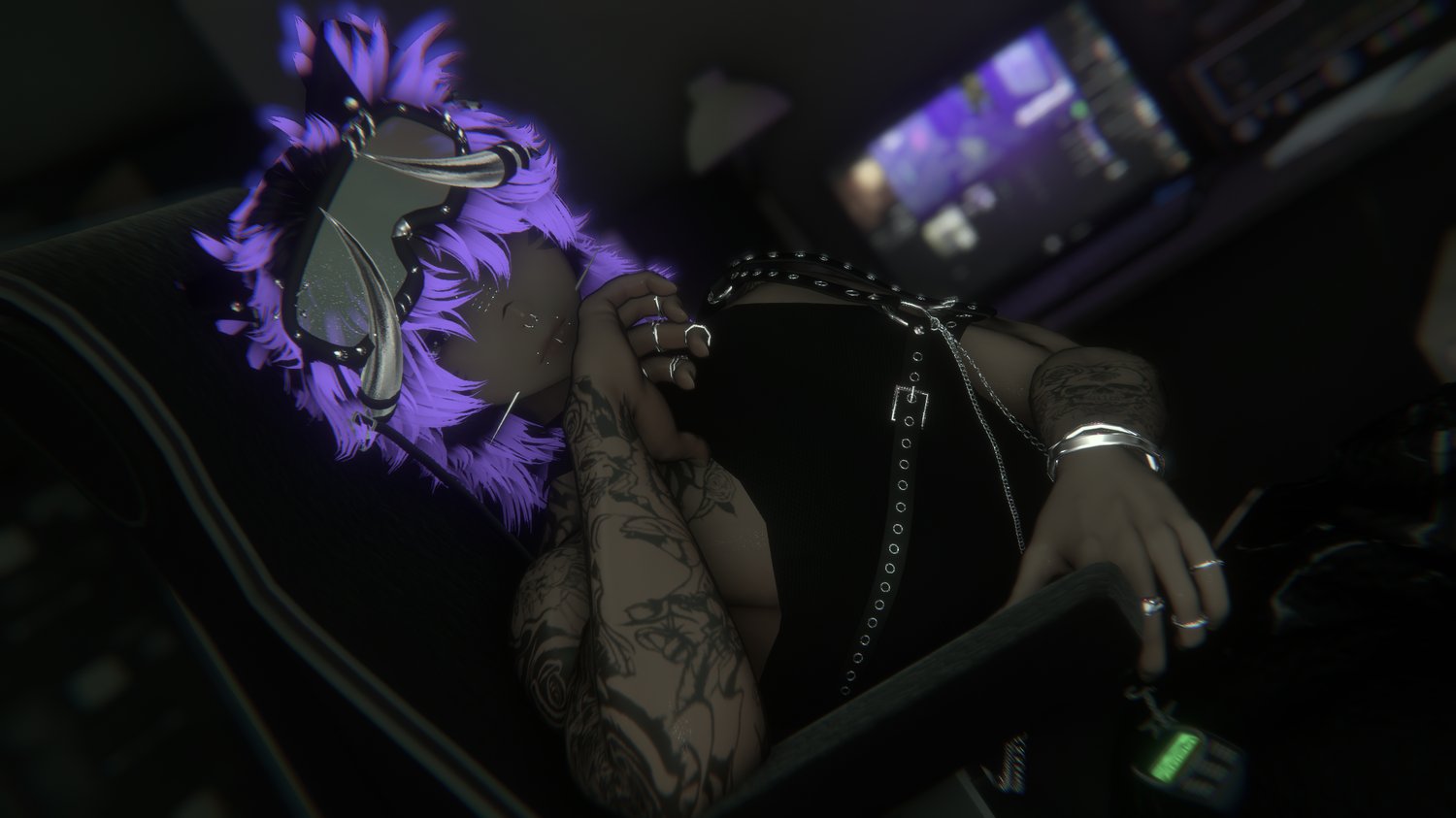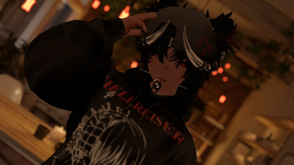 Accessories: Body Harness-pokerblunders, Backwards Hat-Nessy, Fluffy Hat-zoxl, Goggles-lunaraii, LoliPop-ai, Mouth Keychain-mayura, Mouth Sprite-gorekittwn, Piercings-24am, Arm Fishnet, Rings-anaram, Left Bracelet-Zinpia, Right Bracelet-anaram, Worm toy-hugandlove, Finger KeyChain-mayura, Hip KeyChain-mrsauce01, Neck Chain 1-alces, Neck Chain 2-alces, Belt-Freshvrc, Blindfold-ArturVR, Gumboy-GumboIsland
