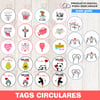 - 26 TAGS Circulares 6cm (redimensionables y editables)