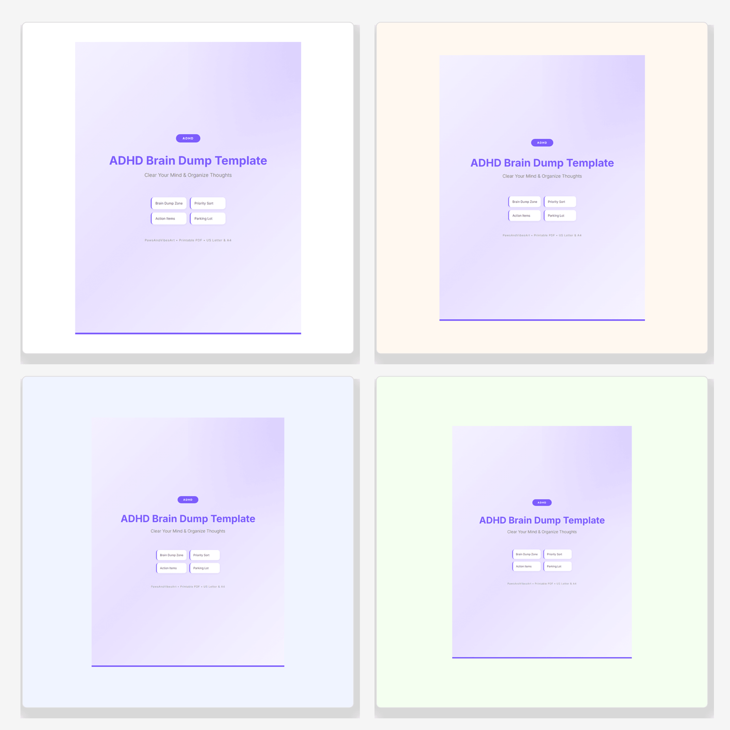 Clear Your Mind & Organize Thoughts. Brain Dump Zone - write everything on your mind. Priority Sort - Urgent, Important, Can Wait. Action Items - turn chaos into a clear to-do list. Parking Lot - ideas to revisit later. Perfect for ADHD, neurodivergent brains. US Letter & A4 PDF. Instant download. PawsAndVibesArt