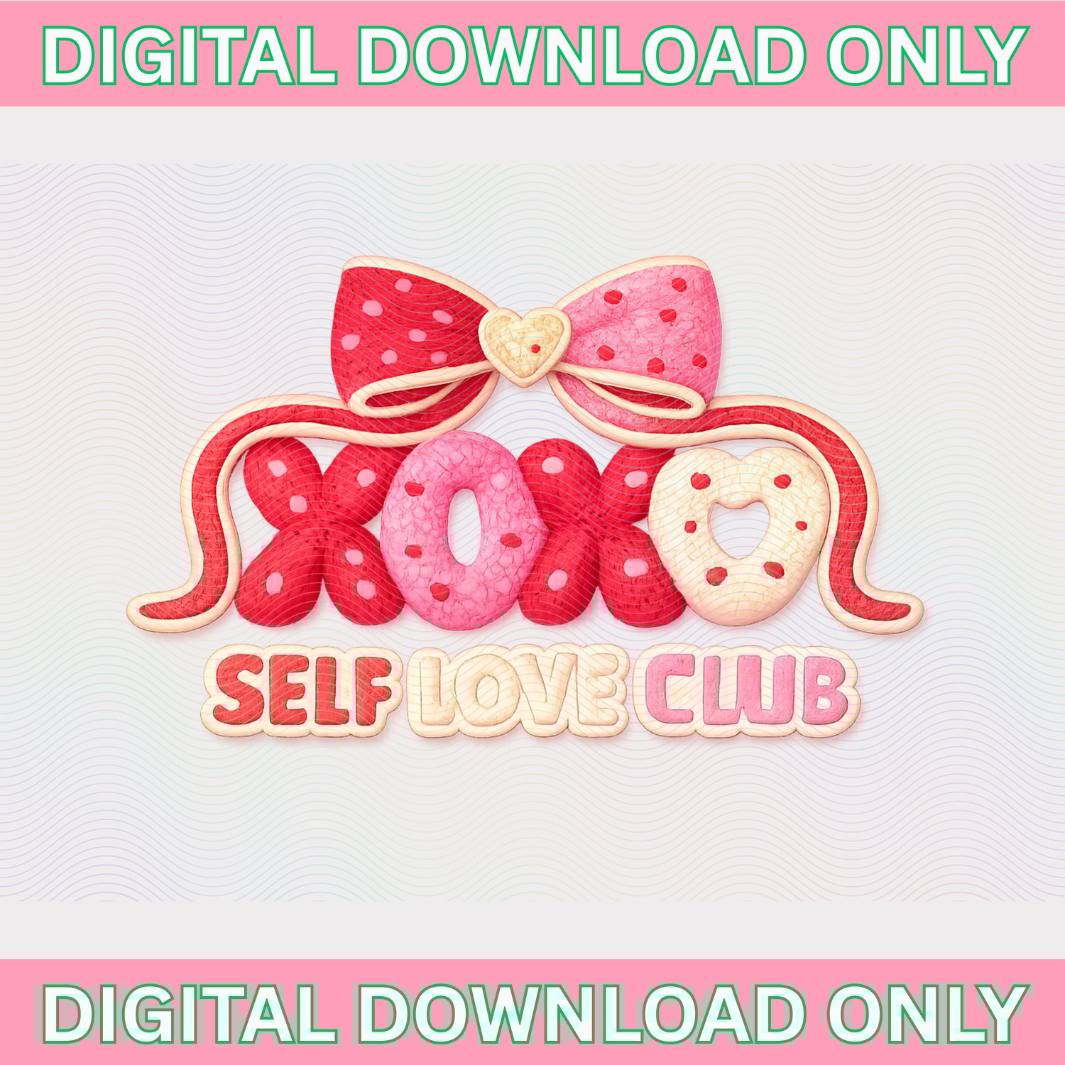 Self Love Club XOXO PNG | Valentine's Day Digital Art | Cute Bow Cookie Clipart | Instant Digital Download for Sublimation & DTF