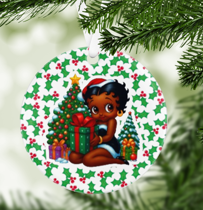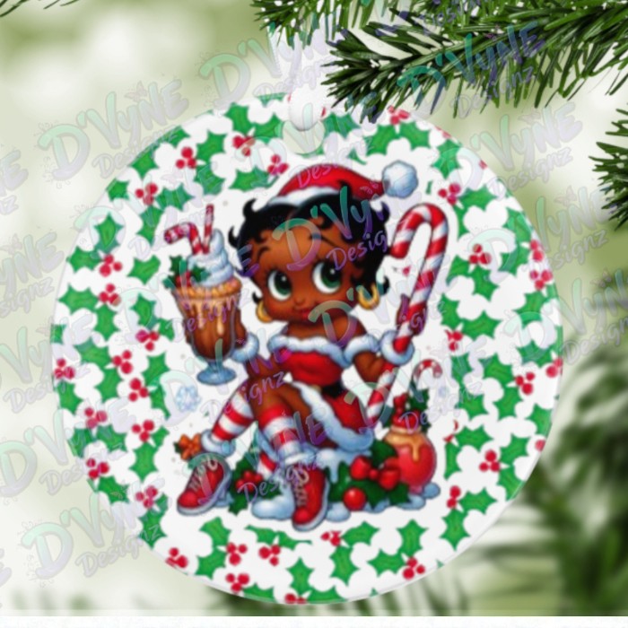 🎄 African American Betty Boop Holiday Magic – Flat DOBLE SIDED MDF Ornaments 🎄 Set of FOUR.